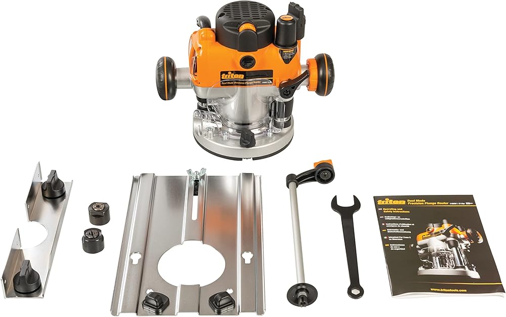 The TMNRTR 7.3A / 1.2hp Trimmer Router is Triton's answer for a handy, lightweight, compact router. It is easy to control, achieves a fine finish, and is ideal for a variety of handheld tasks including mortising, moulding, and edging of laminates. Supplied with two bases, the trimmer base includes an edge roller guide attachment for use with bearingless cutters. The dual circular and flat-sided plunge base doubles as a router lift when fitted to a compatible router table and used with the included table height winder. The parallel guide fence attaches to the plunge base for a range of 0 to 5-1/8".