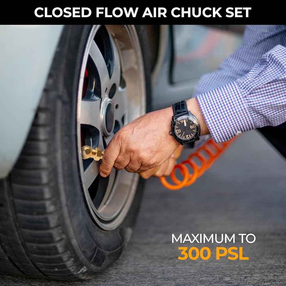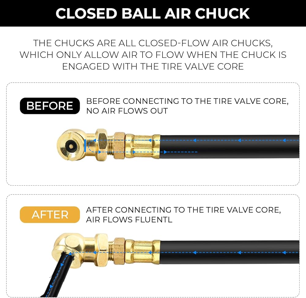 Enhanced Safety with No Air Leaks: The closed ball structure of our air chucks, minimizes thread gaps and prevents air leaks, ensuring a safe and efficient inflation process. This is beneficial for maintaining the safety of locking seats and driving belts.