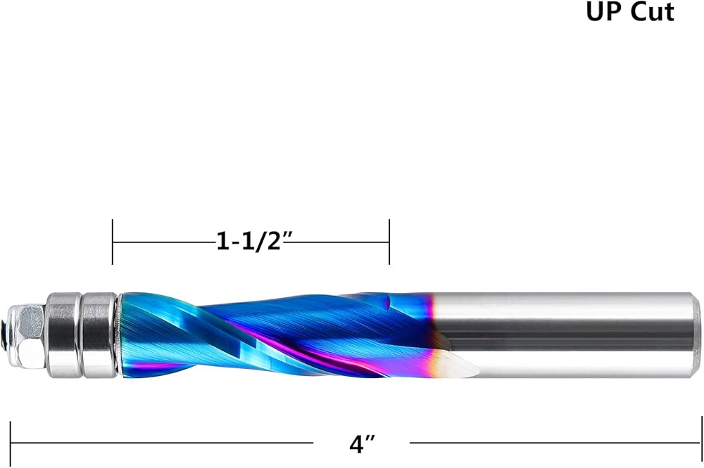 • UP CUT. The down cut left a clean top surface. ensur have a perfectly clean top edge reducing any fraying or chipout that would be left.