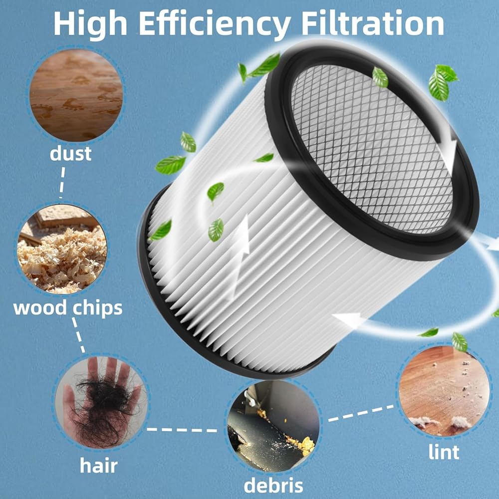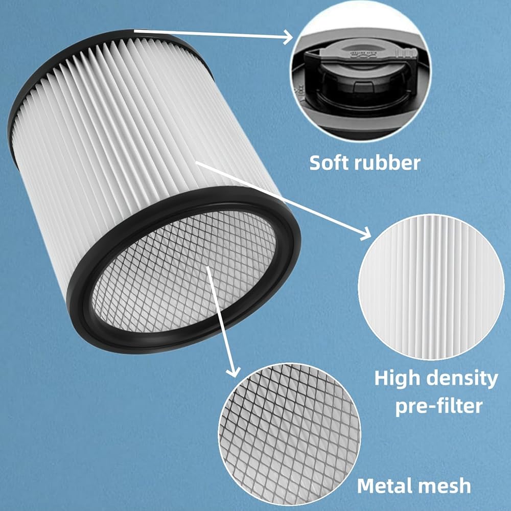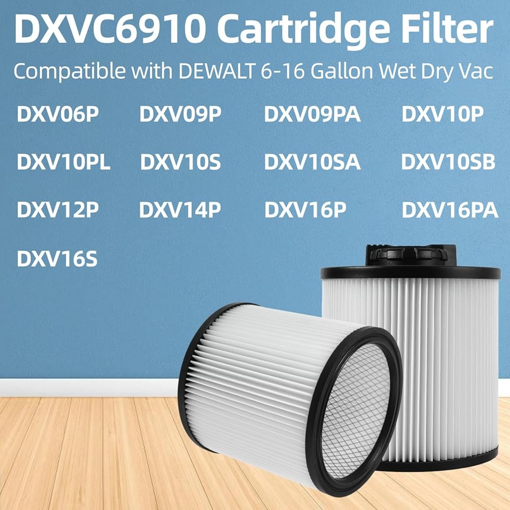 2 Pack DXVC6910 Cartridge Filter Replacement for Wet/Dry Shop Vacuum Cleaner 6-16 Gallon
