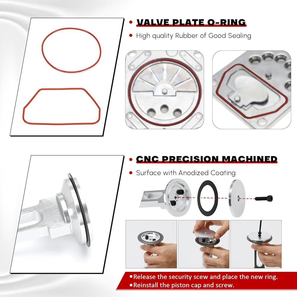 - مجموعة مكبس الضاغط مصنوعة من الألومنيوم والمطاط عالي الجودة، مع سطح مطلي بأكسيد. استبدال رقم الجزء: KK-4835، KK-5081، A02743