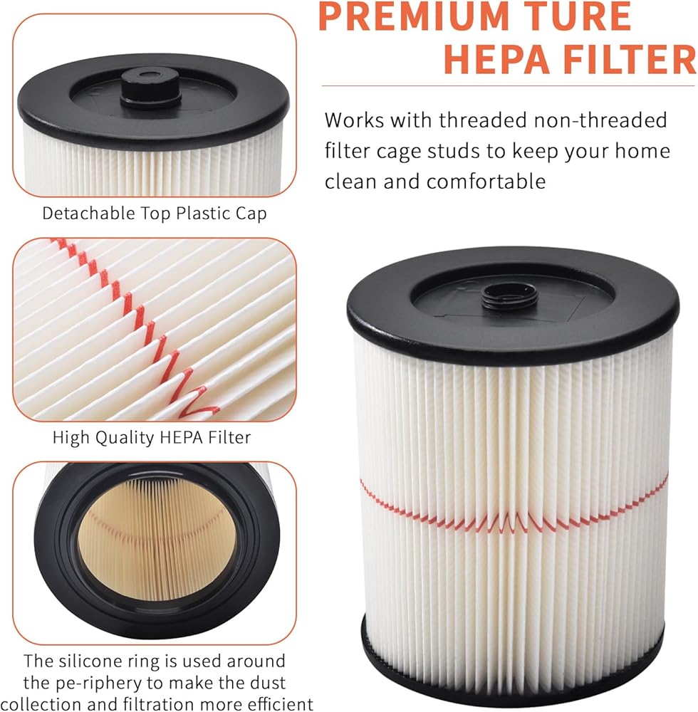 ★ 【مرشح HEPA ممتاز 】 - بديل فلتر 9-17816 لـ Shop Vac Craftsman 17816 9-17816 مكنسة كهربائية مع مرشح كومة حقيقي يستخدم لالتقاط الحطام الجاف، فلتر ورقي مطوي لتصفية أفضل للحطام، يعمل مع فلتر ملولب غير ملولب ترصيع القفص للحفاظ على منزلك نظيفًا ومريحًا.
