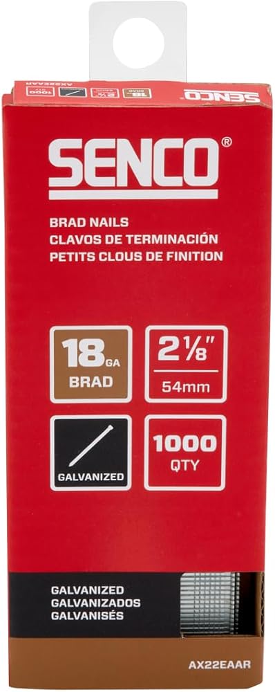 مسامير براد من SENCO AX22EAAR مقاس 2-1/8 بوصة مقاس 18، لمسة نهائية مجلفنة، عبوة من 1000 قطعة