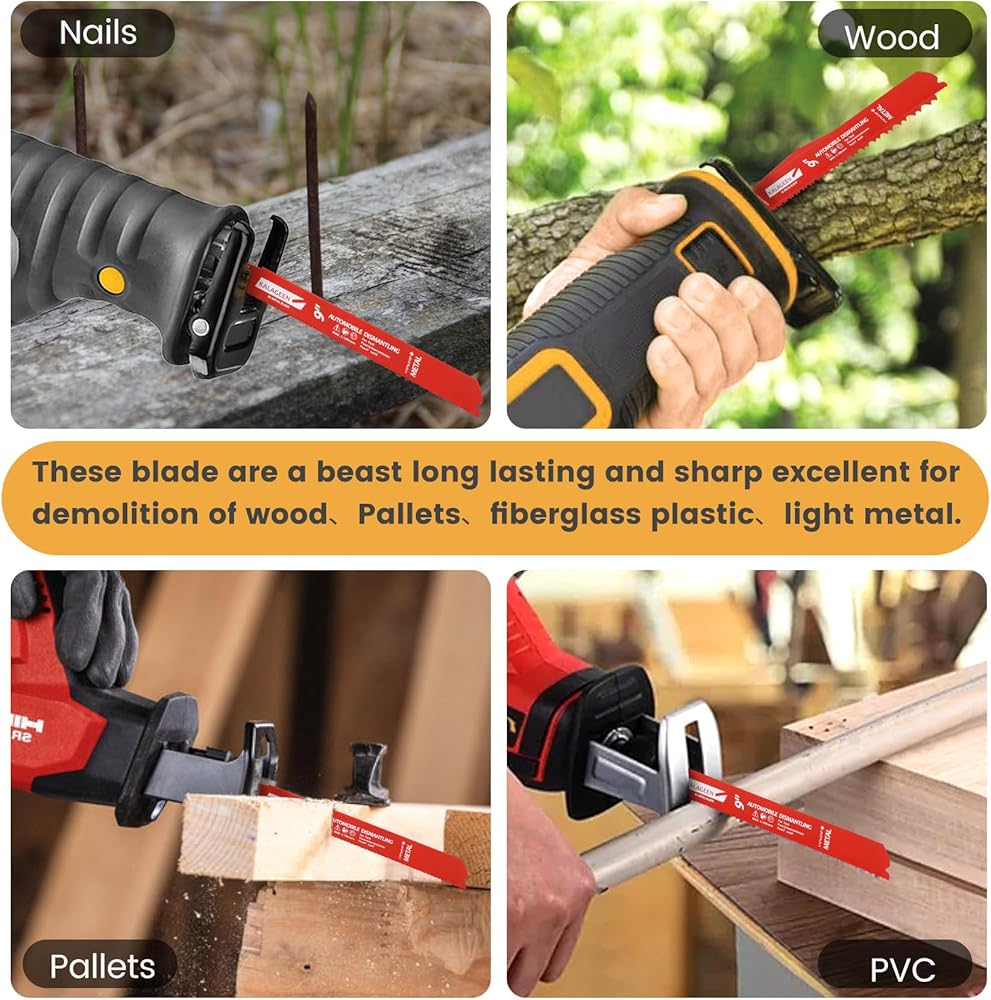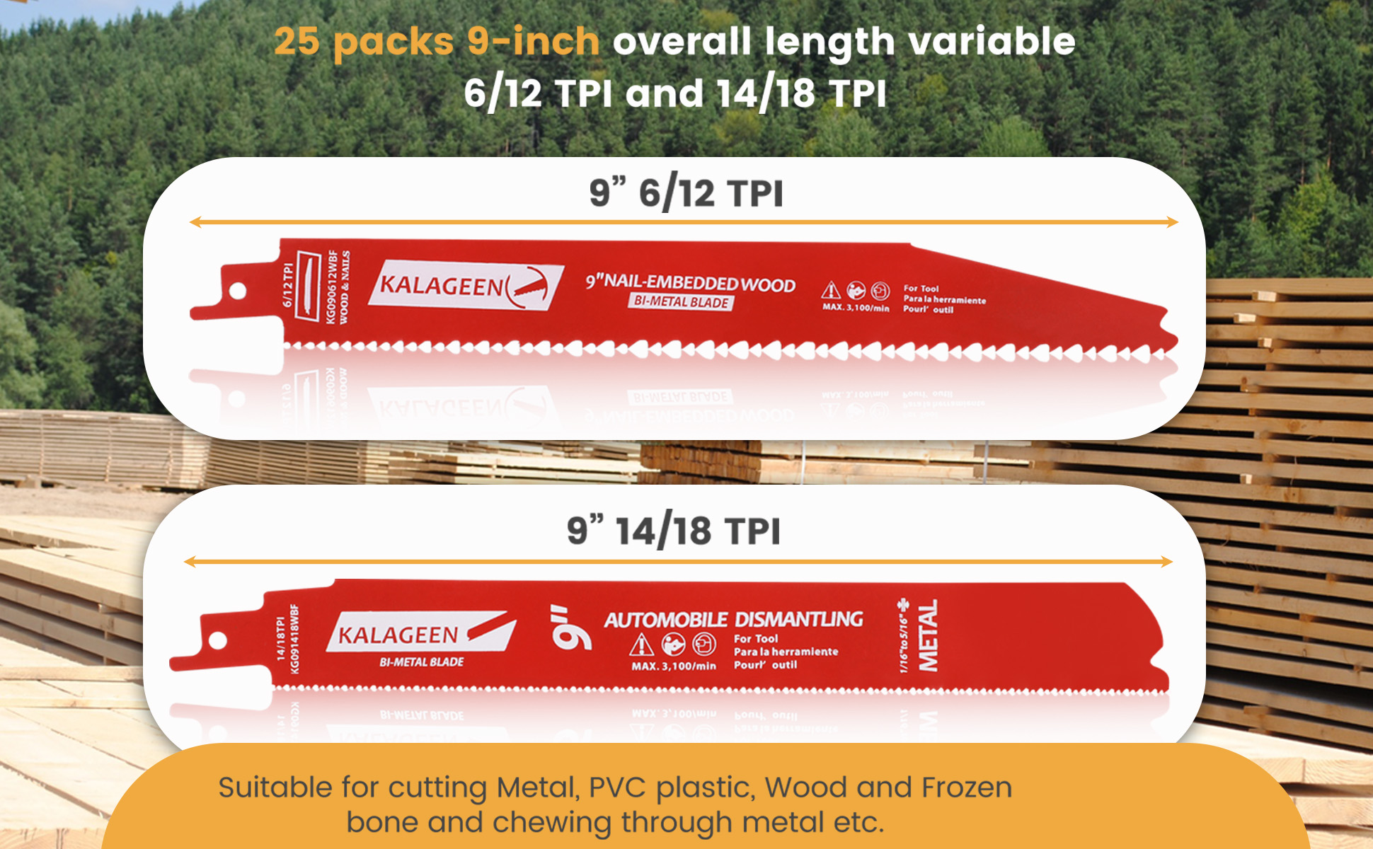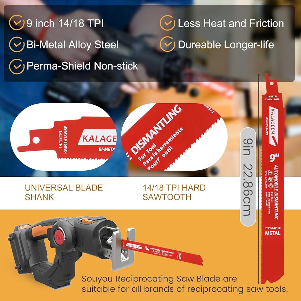 【مقبض عالمي】- شفرة المنشار الترددية كالاجين مناسبة لجميع العلامات التجارية لأدوات المنشار الترددية. تتميز شفرة المنشار الترددية لدينا بقدرة تقليم ممتازة، وسرعة قطع سريعة، وعمر خدمة طويل، وقطع دقيق وسلس، وموفرة للعمالة للغاية.