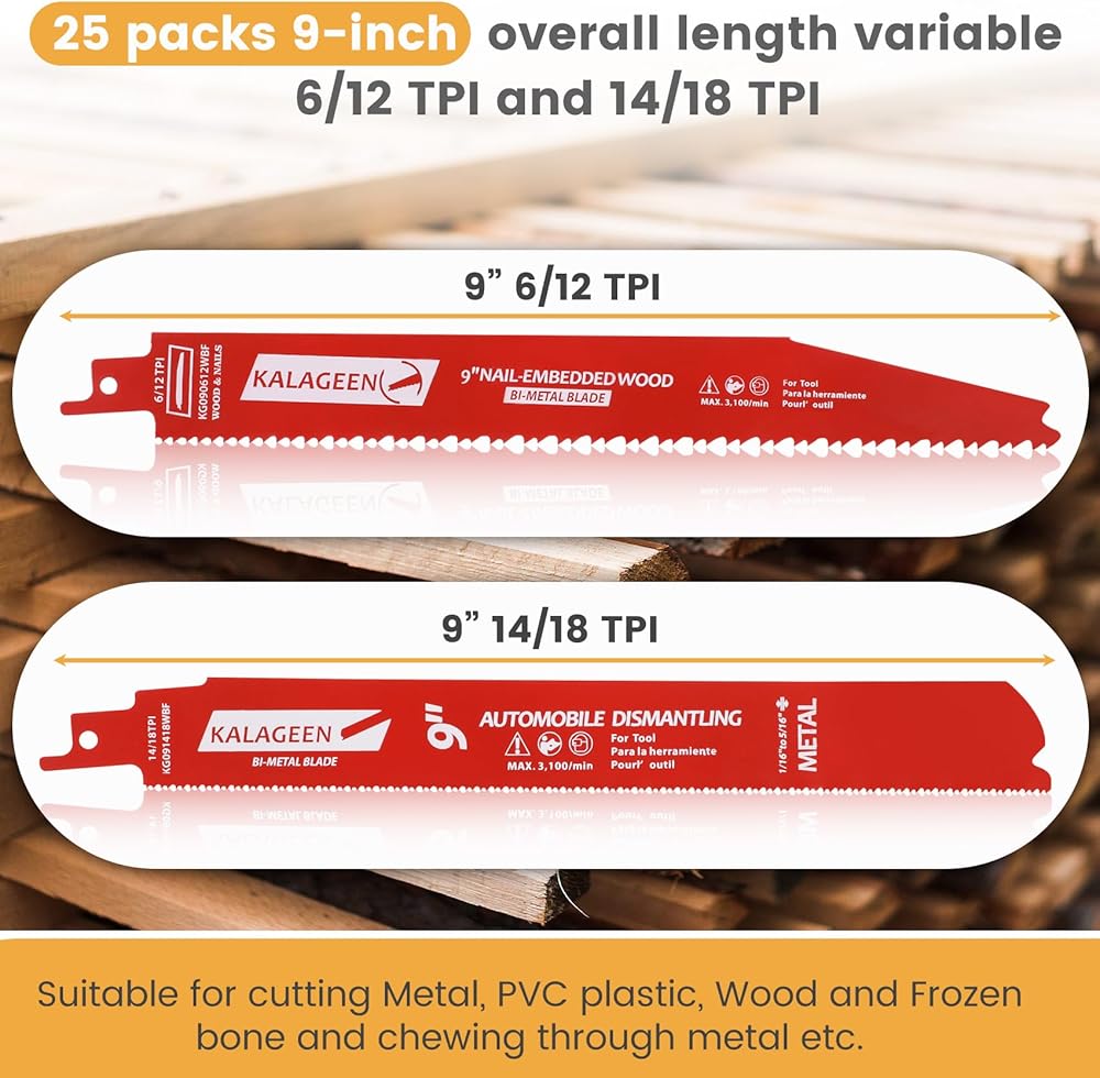 【تسوق خالٍ من المخاطر】: توفر شفرة المنشار الترددية المكونة من 25 قطعة مقاس 9 بوصات 14/18 Tpi KG0914WBF ضمان الجودة والخدمات الاستشارية مدى الحياة في أي وقت. اسمح باسترداد أموالك بالكامل واستبدال جديد مجاني لأي سبب من الأسباب، فقط من أجل رضاك عن التسوق بنسبة 100%.
