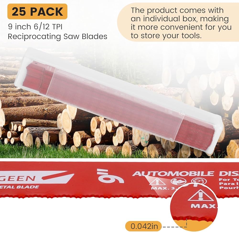 【تتضمن العبوة والاستخدام】 - شفرة منشار ترددية 9 بوصة 14/18TPI مكونة من 25 قطعة. يتم استخدام سُمك فائق السُمك 0.042 بوصة بشكل مثالي لتحقيق أقصى قدر من الأداء والمتانة أثناء قطع الفولاذ والمعادن الأخرى والخشب ومركبات الخشب والخشب المدمج في الأظافر. Prepectly لقطع 1/16-5/16 من الفولاذ والمعادن المتوسطة.