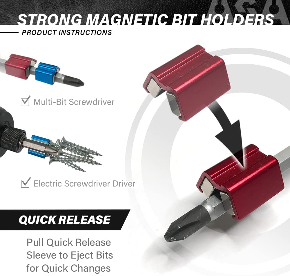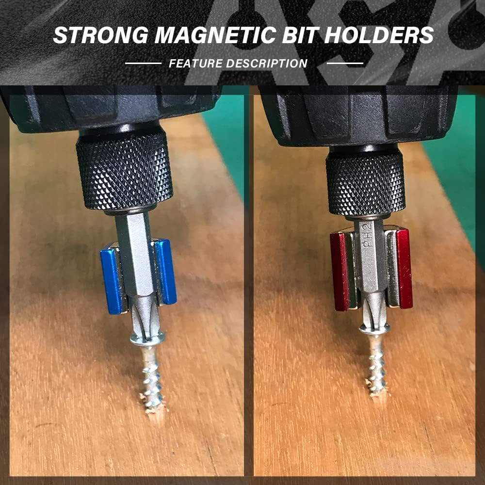 【Fast And Effortless】 - Just suck the screwdriver bit into the magnetic ring, the screw can be easily picked up,magnet drill bit holders speed up the drilling process with less worry about wobbling or stripping as it locks in the drill bit and allows for accurate drill direction.