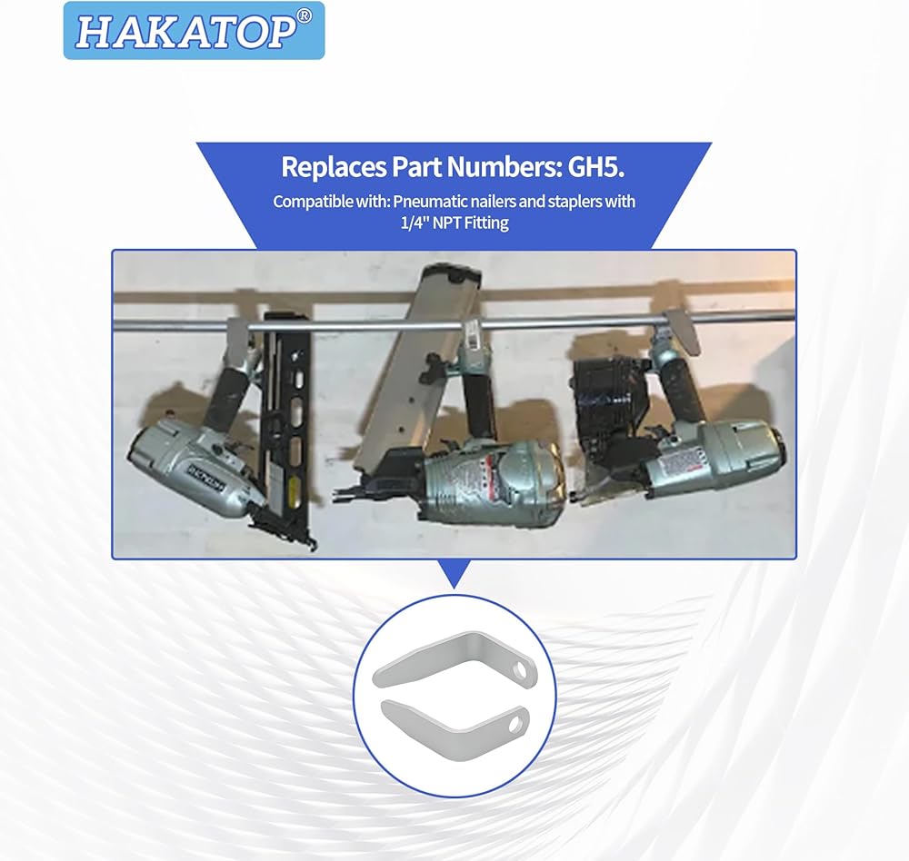 HAKATOP GH5 خطاف/شماعة ذات فتحة واحدة صغيرة لتركيب مسدس أظافر NPT مقاس 1/4 بوصة - مجموعة فتحات مزدوجة من الألومنيوم على شكل حرف L مكونة من 2