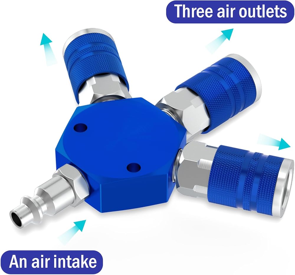 • 【مشعب ثلاثي الاتجاهات】يحول هذا التصميم المشعب ثلاثي الاتجاهات بشكل فعال خطوط طيران واحدة لضاغط الهواء إلى 3 خطوط طيران منفصلة لمزيد من الكفاءة.