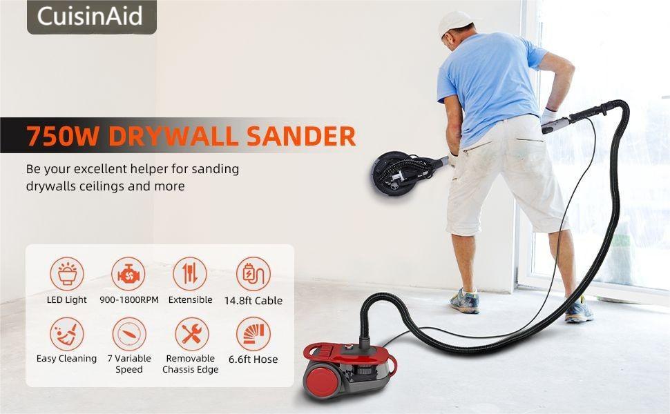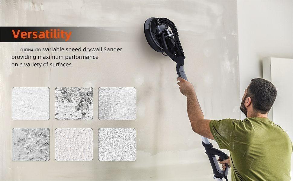 【أداء عالي الطاقة】: تتميز ماكينة صنفرة الحوائط الجافة بمحرك قوي بقدرة 750 وات، مما يوفر صنفرة فعالة للحصول على لمسة نهائية ناعمة على أسطح الحوائط الجافة.