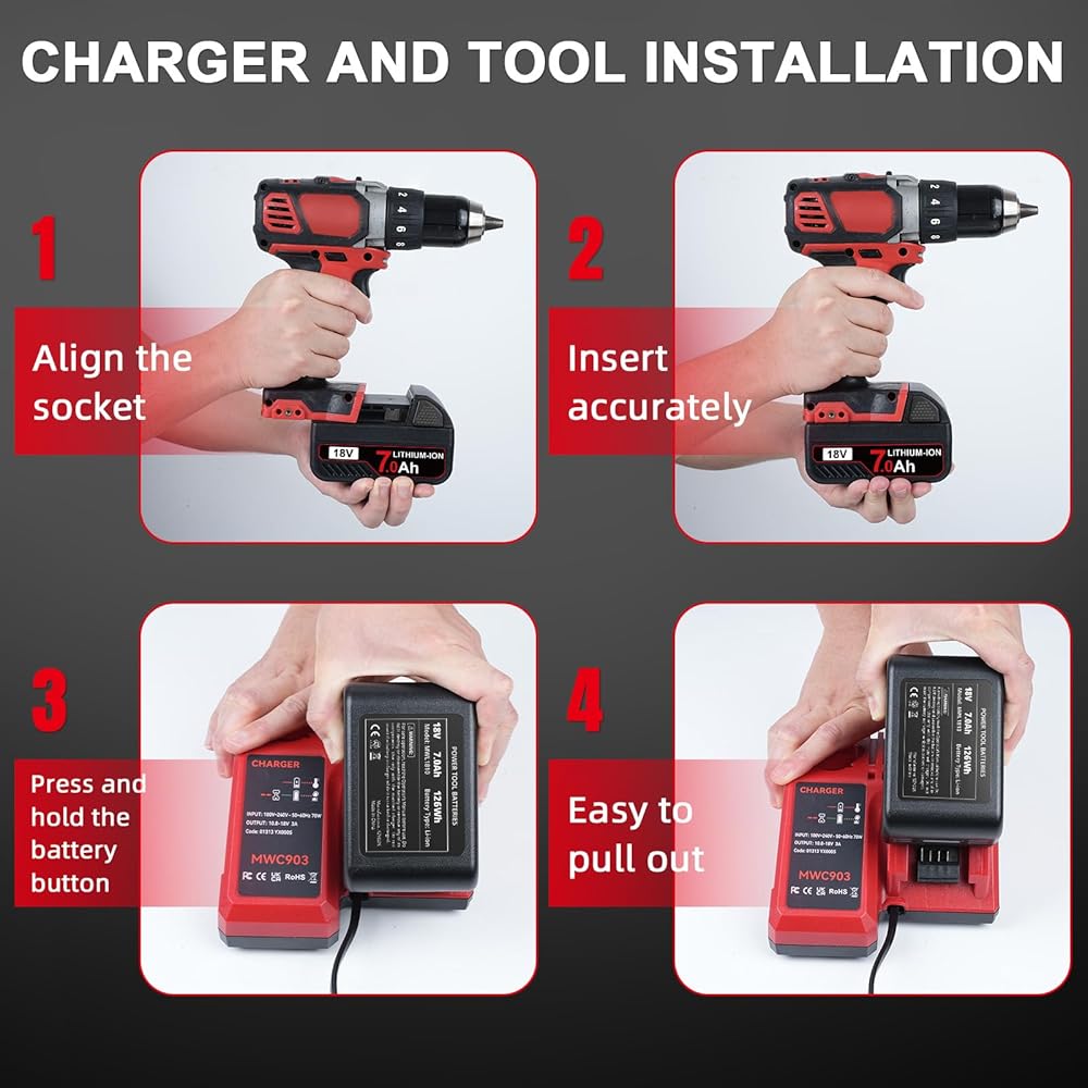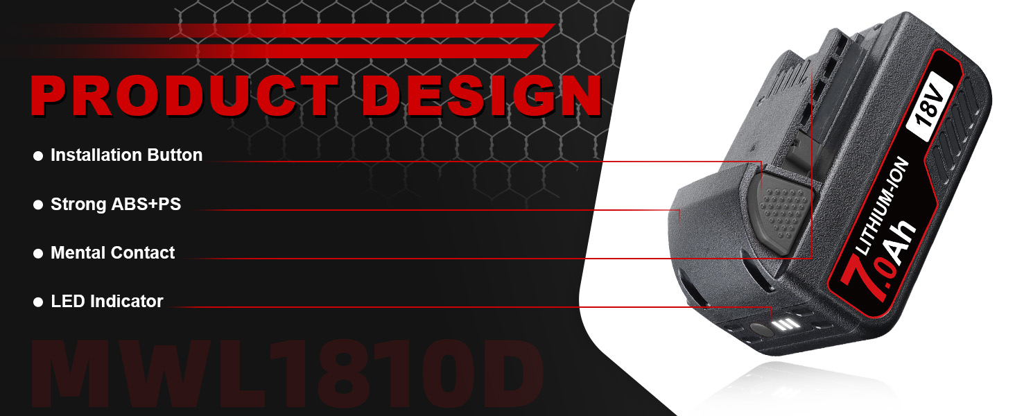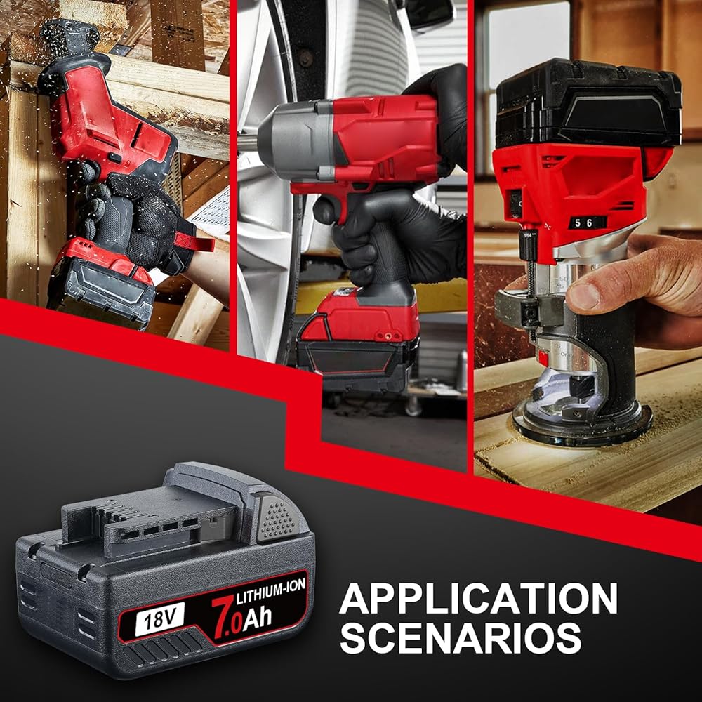 • 【ميزات البطارية】جهد البطارية: 18 فولت | سعة البطارية: 7000 مللي أمبير| نوع البطارية: ليثيوم أيون قابلة للشحن | متوافق مع بطارية Milwaukee M-18 والأدوات اللاسلكية.