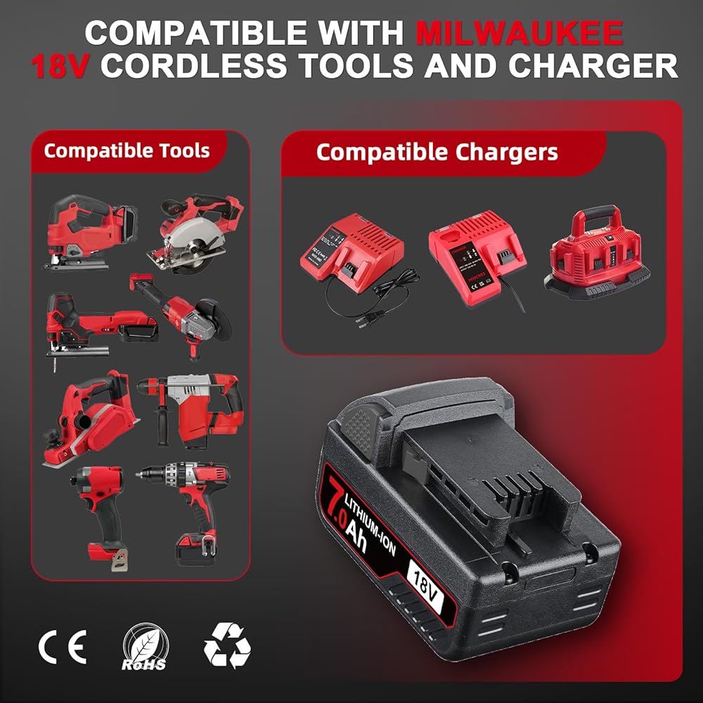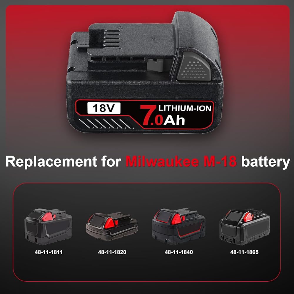 2 حزمة 7.0Ah بطارية ليثيوم أيون بديلة لأدوات ميلووكي M-18 بطارية 18 فولت