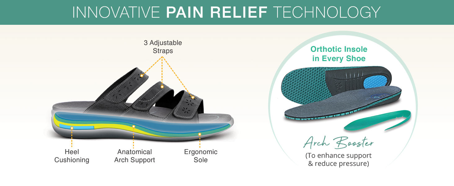 يوفر لك هذا الصندل ذو الأشرطة وخفيف الوزن والأنيق لتقويم العظام الدعم والراحة، مع السماح بإمكانية التعديل طوال اليوم.