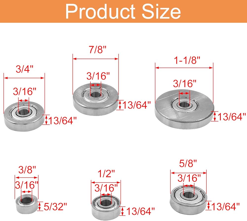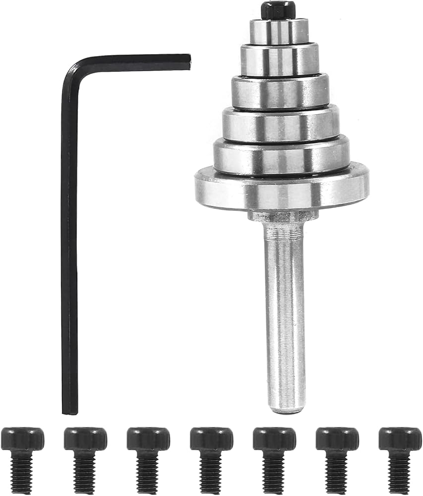 Package Content: The package includes 6 pcs different size bearings, 1 pcs hex key wrenches and 6 pcs screws to replace damaged or lost router bit bearings.