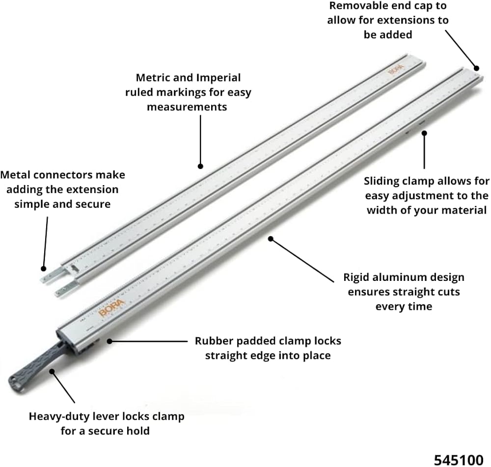 دليل المنشار ذو الحافة المشبكية مقاس 100 بوصة من بورا للأعمال الخشبية والمقاولين والنجارين والأعمال اليدوية، دليل للمناشير الدائرية، طول القطع 100 بوصة، 545100