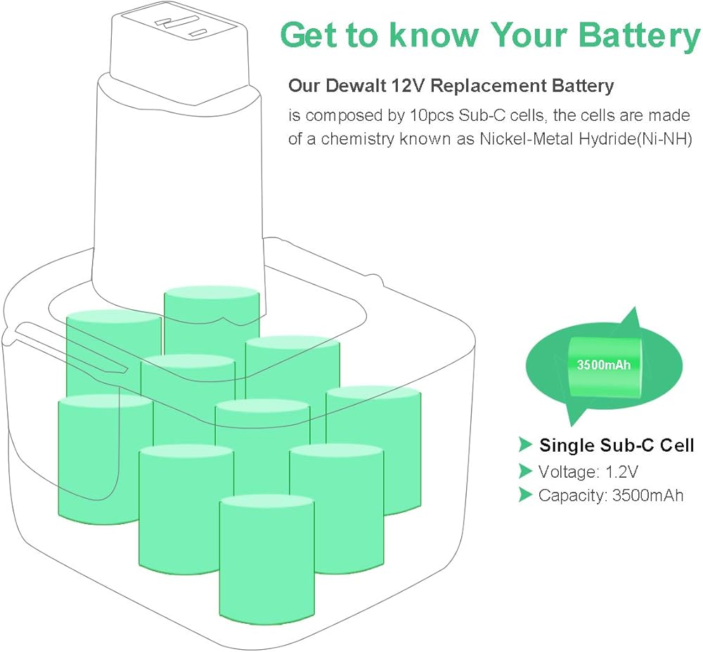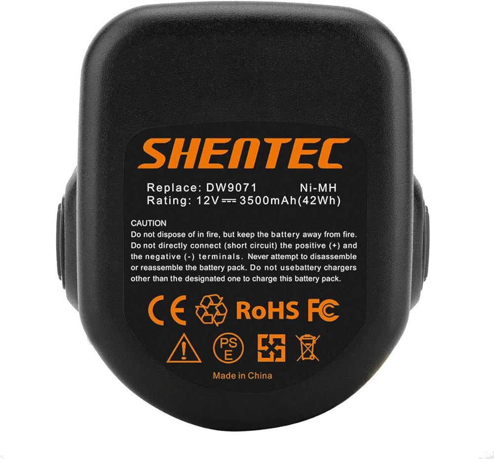 بطارية بديلة Shentec 2-Pack 3500mAh 12V متوافقة مع Dewalt DW9071 DW9072 DC9071 DE9037 DE9071 DE9072 DE9074 DE9075 152250-27 397745-01، بطارية Ni-MH