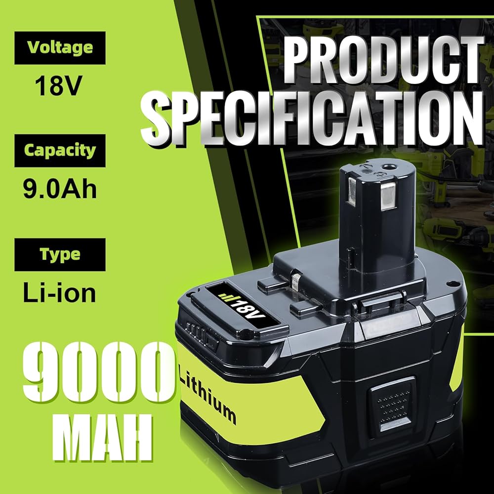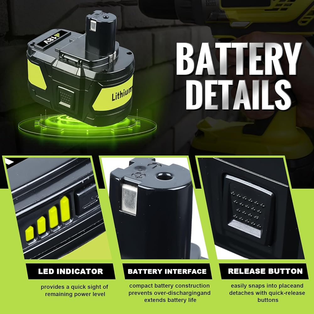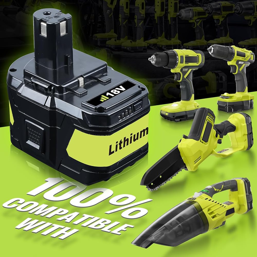 توافق كامل - استبدال بطارية Ryobi 18V P102 P103 P104 P105 P107 P108 P109 ومتوافقة مع أدوات الطاقة اللاسلكية Ryobi 18V