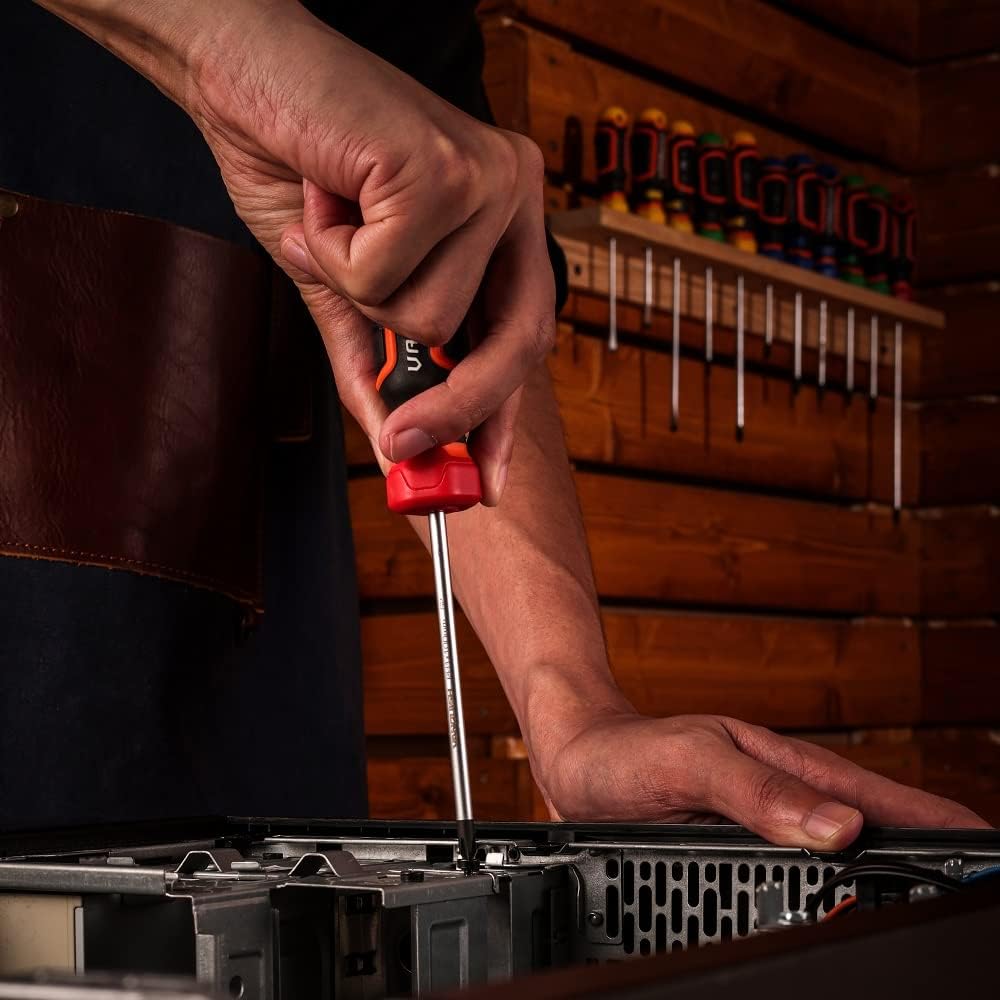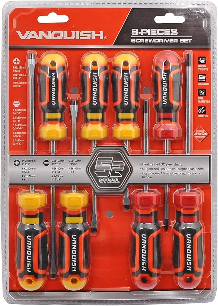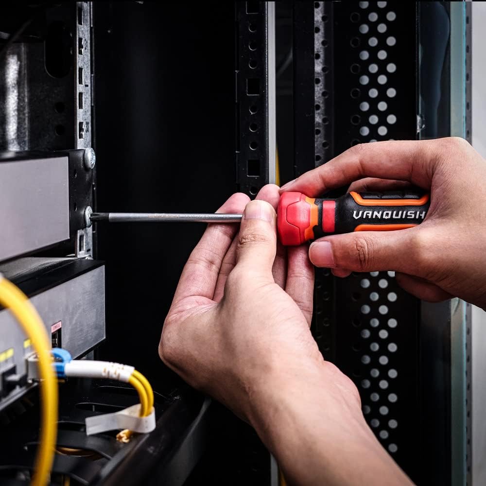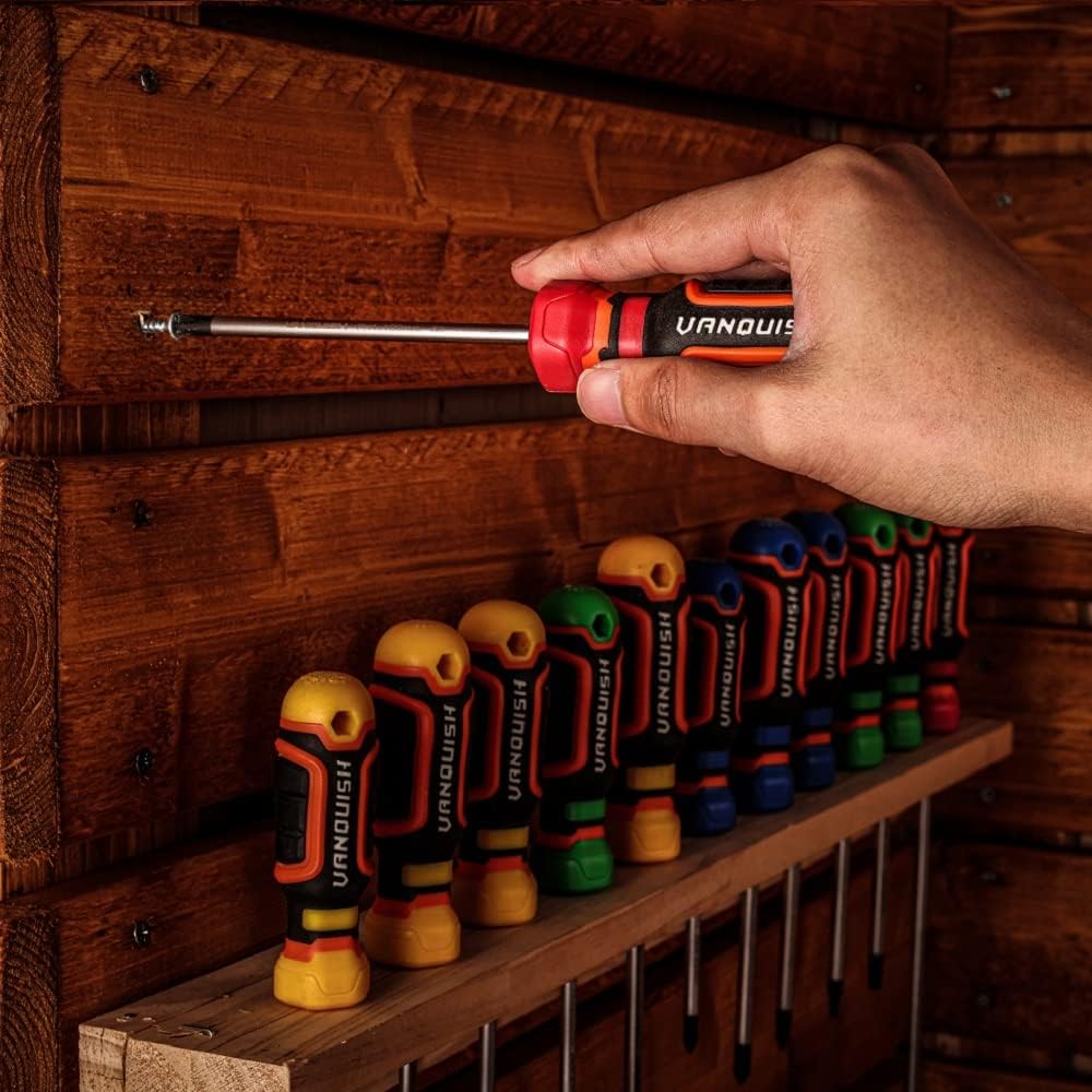 No matter what you need to get done, VANQUISH multipurpose screw drivers set are the first choice for electricians, mechanics and repair shops. Forged with S2 steel blades and coated with nickel-plated finish, the magnetic head screwdrivers are not easy to bend, not easy to rust. With strong magnetic tips, it can hold screws and make it easy to lift the screws. Ergonomic handles for fast and low-fatigue working, these screwdriver repair tool kit is perfect for fastening, chiselling and loosening seized screws.