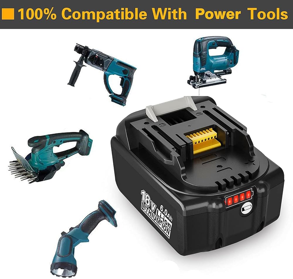 • 【Widely Compatible】Replace 18V batteries BL1860, BL1860B, BL1850, BL1850B, BL1840, BL1840B, BL1830, BL1830B, BL1815, BL1825, BL1835, BL1845, 194205-3, 194309-1, LXT400. Works with Makita 18 Volts Cordless Power Tools and DC18RC DC18RA Chargers.