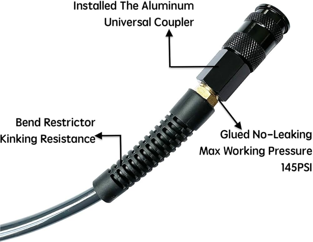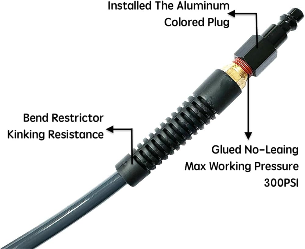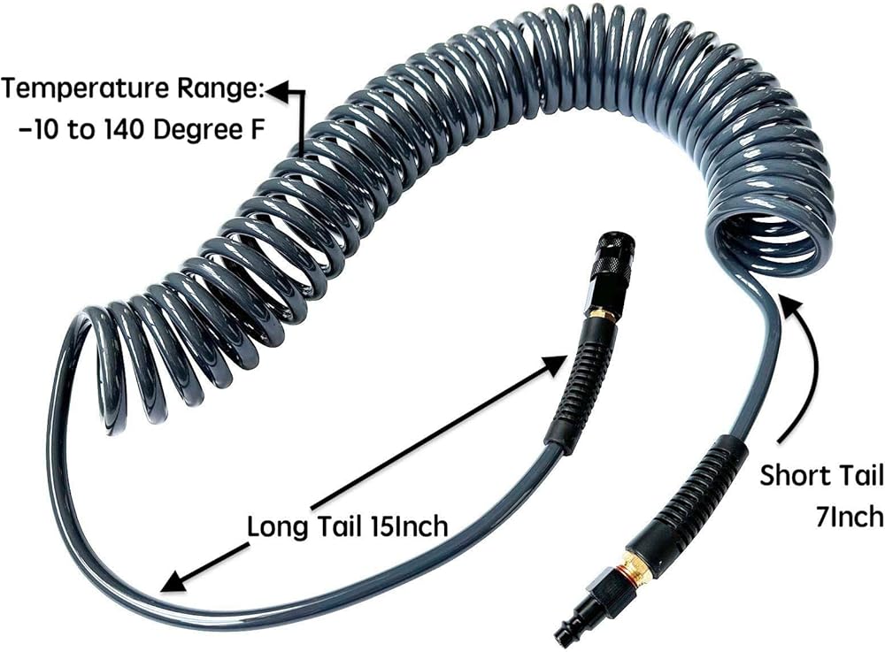 • 🌋الأداء: تم تجهيز خرطوم الهواء المصنوع من مادة البولي يوريثان بتركيبات نحاسية غير قابلة للحركة مقاس 1/4 بوصة MNPT تنتهي بموصل ومقبس ألومنيوم عالمي 3IN1. هذا الخرطوم أكثر سمكًا من معظم الخراطيم ويبدو أنه متين ويجب أن يستمر لفترة من الوقت في ظل الخدمة العادية (غير التجارية). الذيل الأطول هو 15 بوصة مع وصلة (سهلة التوصيل)، والذيل الأقصر هو 7 بوصة مع القابس. يمكن أن يصل إلى 145 أقصى ضغط عمل. نطاق درجة الحرارة هو -10 إلى 140 درجة فهرنهايت.