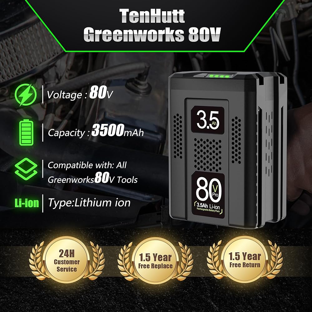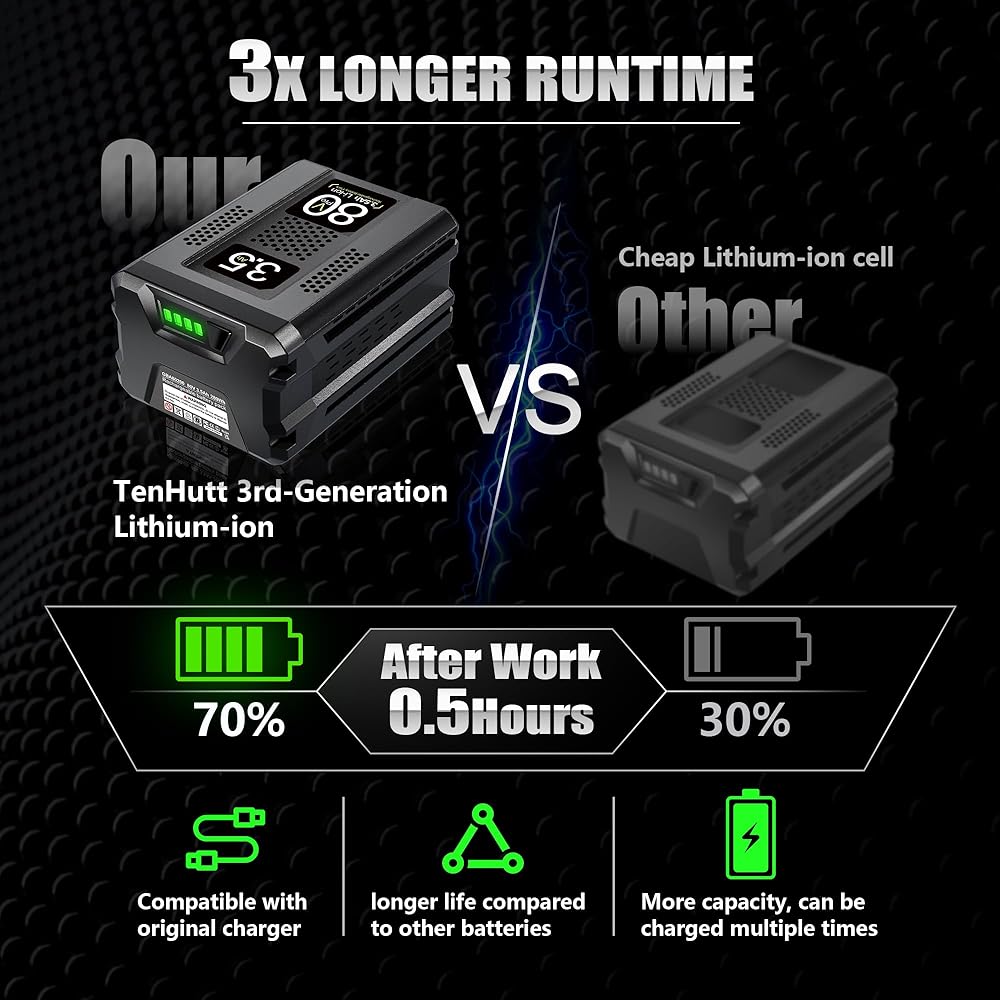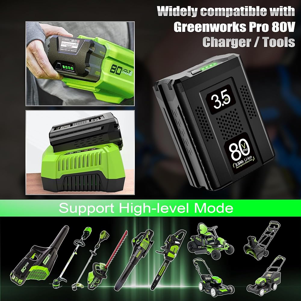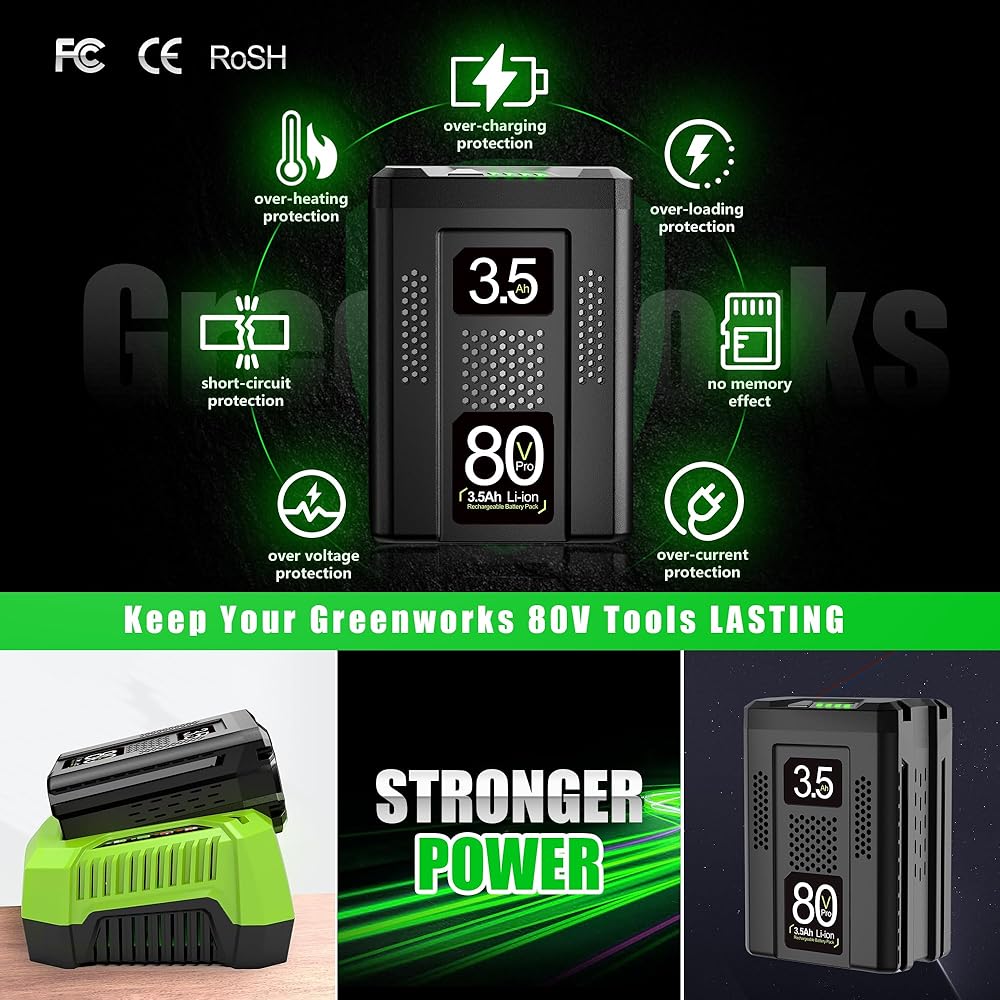 TenHutt 【ترقية】 بطارية بديلة 80 فولت 3.5 أمبير في الساعة لبطارية Greenworks PRO 80 فولت GBA80200 GBA80300 GBA80400 بطارية ليثيوم أيون ذات سعة عالية
