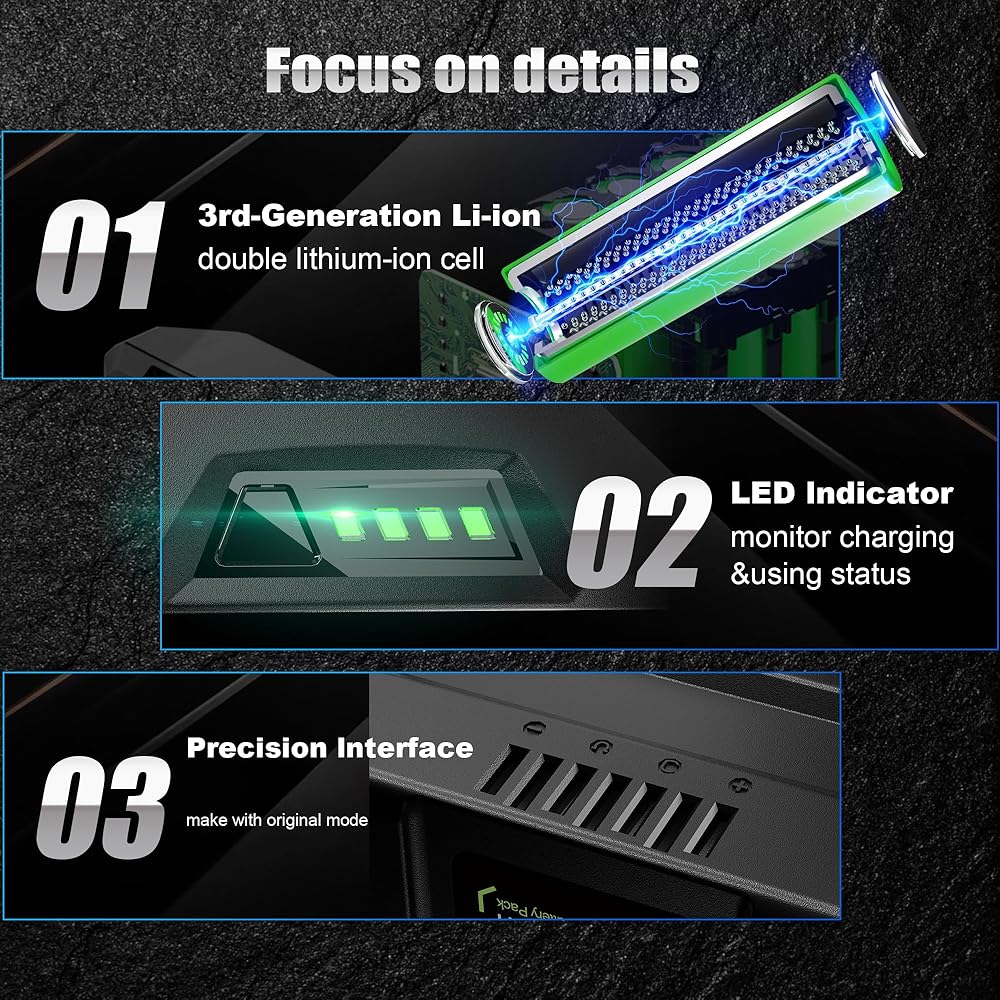 • ✔【توافق واسع النطاق】 يعمل بشكل متوافق تمامًا مع جزازة Greenworks pro 80V ومنفاخ ومنشار وما إلى ذلك| العمل مع شواحن Greenworks 800V. | استبدال بطارية Greenworks GBA80200 GBA80250 GBA80400 GBA80500.