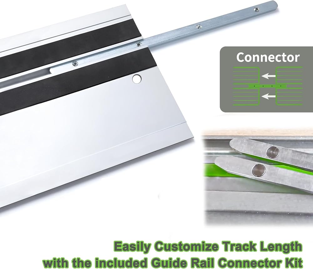 【Perfect Alignment for Festool Saws】: Crafted specifically for Festool TS-55/TS-75/TS-60 track saws, our track saw guide rail ensures seamless integration, resulting in flawlessly straight, splinter-free cuts that are ready for gluing. Each kit comprises (2) 32" guide rails and (2) track saw guide rail connectors. Utilizing the two connectors, you can effortlessly join two 32-inch track saw tracks, facilitating cuts exceeding 5 feet in length.