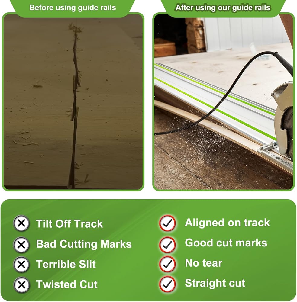 【Premium Material】: Precision-engineered from top-tier extruded aluminum, our track saw guide rail guarantees unparalleled durability, rust resistance, and resistance to deformation. Meticulously crafted with meticulous attention to detail, this guide rail enhances your precision woodworking projects to unparalleled levels.