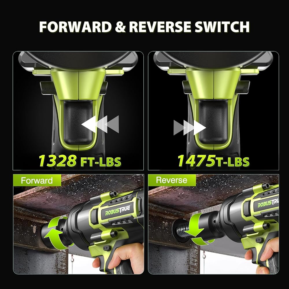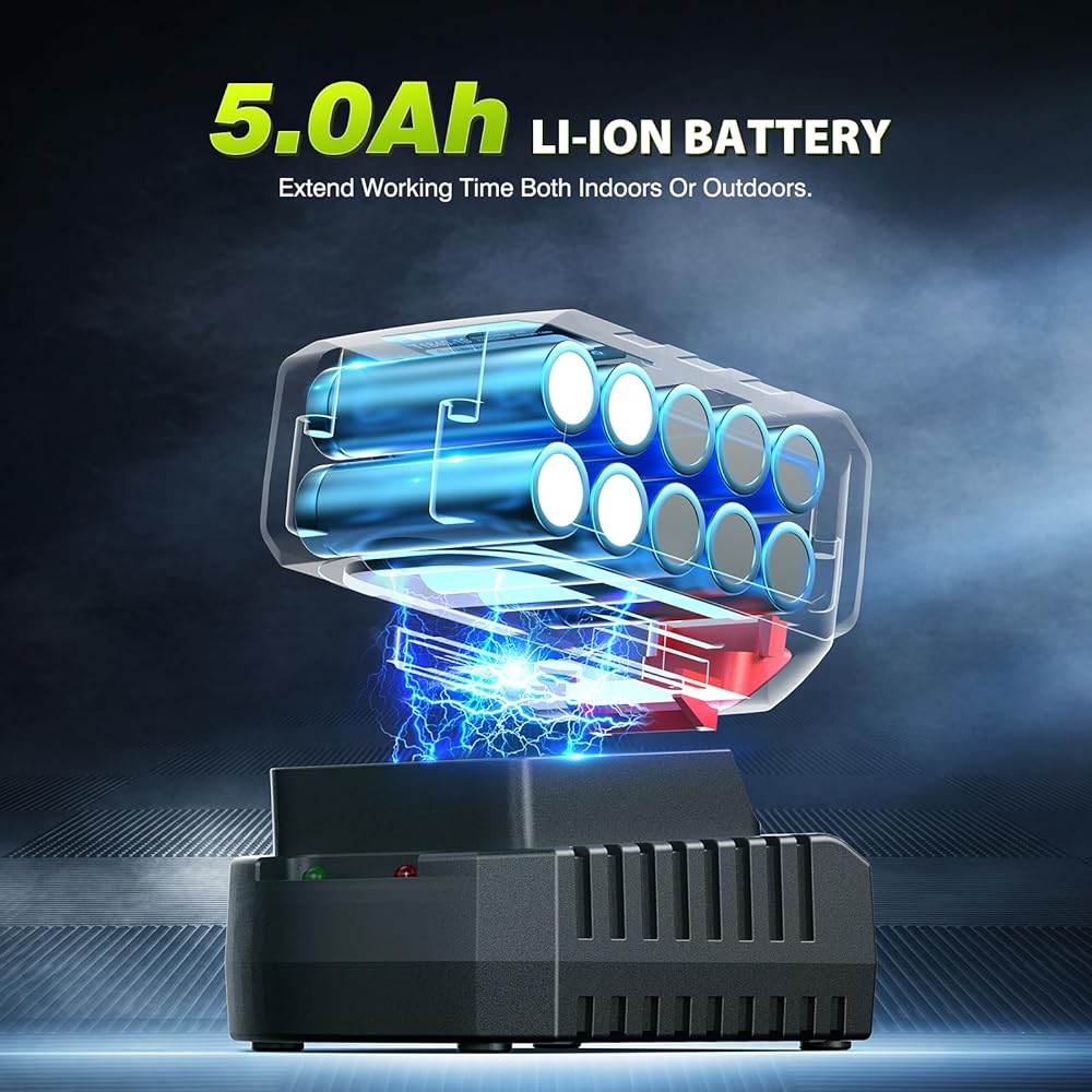 🛠【بطارية 5000 مللي أمبير في الساعة وشاحن سريع】- بالمقارنة مع بطاريات 4.0 أمبير أخرى، يأتي مفتاح الربط اللاسلكي Robustrue مع بطارية قوية 5.0 أمبير في الساعة وشاحن سريع يضمن ما يصل إلى ساعتين من التشغيل المستمر دون الحاجة إلى إعادة الشحن المتكرر. أكثر ملاءمة من المفاتيح السلكية أو الهوائية التقليدية، قل وداعًا للأسلاك المتشابكة ومحدودية الحركة. يمكن للمحترفين وعشاق الأعمال اليدوية استخدامه في المساحات الضيقة أو البيئات الخارجية.