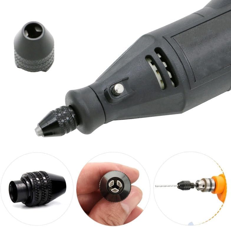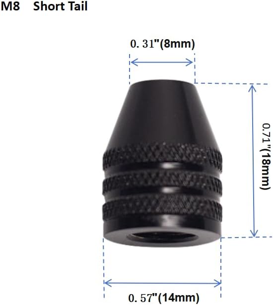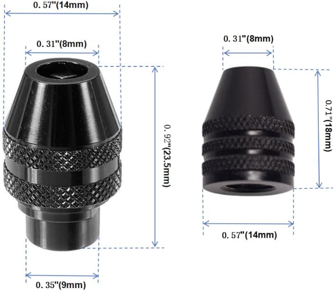 Size:(Long tail)Length 23.5mm, Diameter 14mm. (Short tail) Length 18mm, Diameter 14mm.Accepts accessory rotary bits with 1/32 inch (0.8 mm) to 1/8 inch (3.2 mm) shanks.