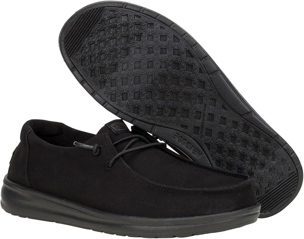 Upgrade your footwear game choosing the Hey Dude Wendy Work Wide sneakers! Crafted with canvas upper and textile lining, these sneakers are as stylish as they are functional. The removable memory foam cushioned insole offers maximum comfort while preventing sweating and odors. Thanks to the Flex & Fold technology, these sneakers support healthy feet by allowing complete freedom of movement. Slip-on style with an elasticized lace front. Branding on the tongue and back heel tab. Round toe design. Rubber outsole.