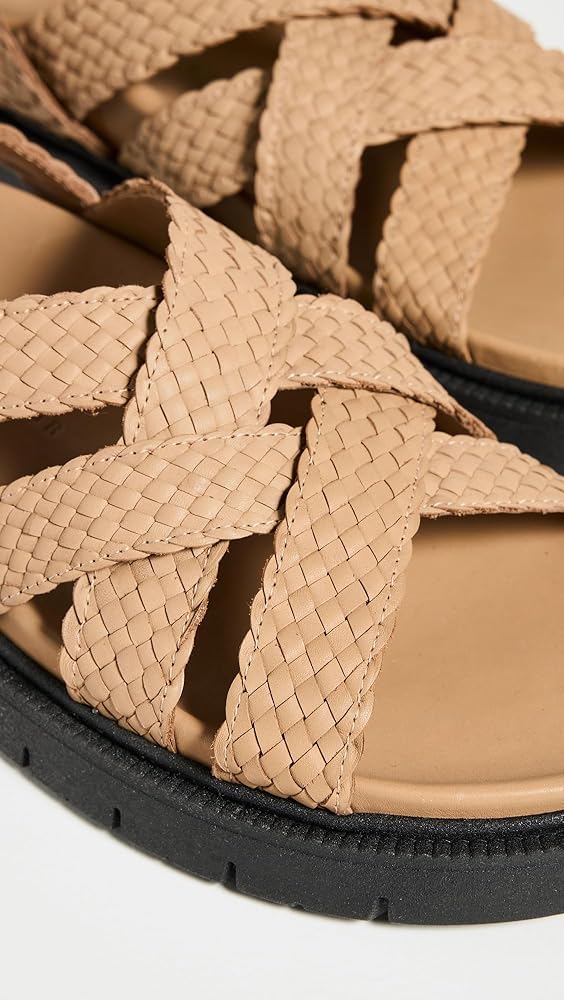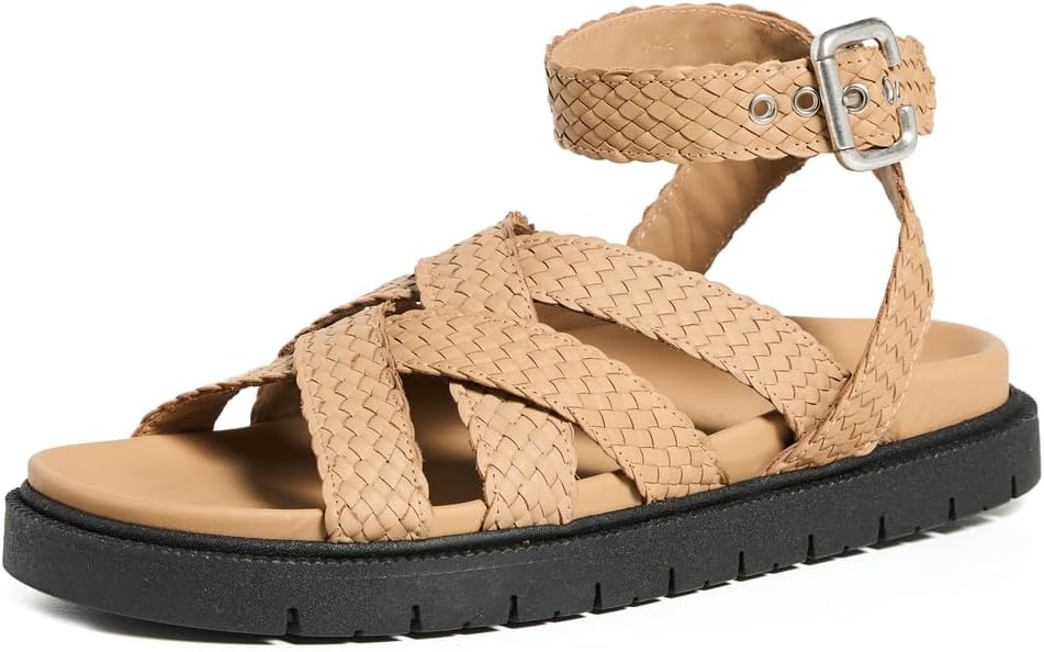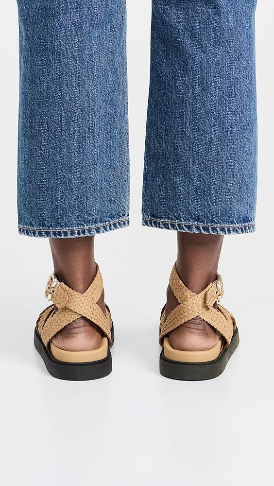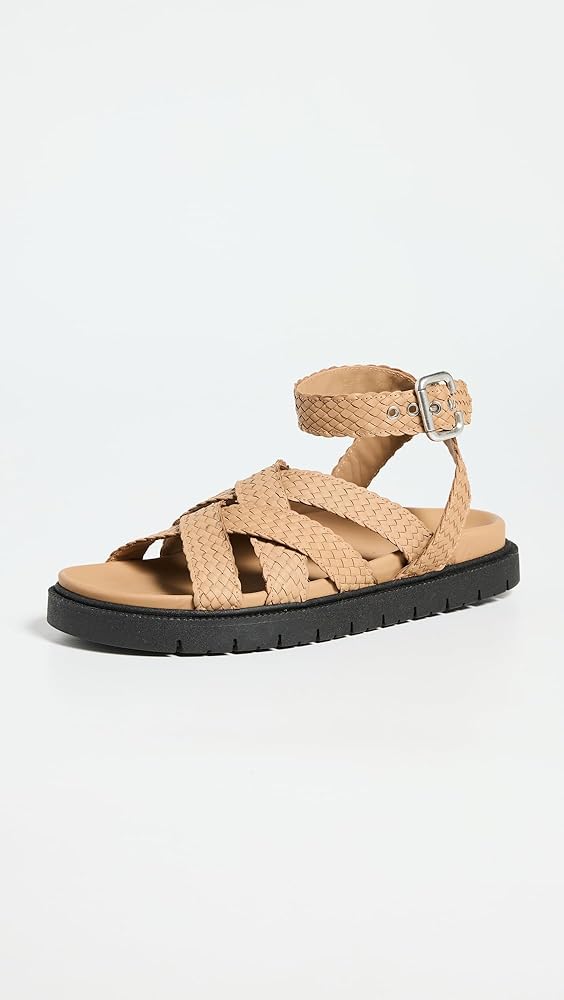 - Crisscross straps , Padded leather footbed, Buckle ankle strap