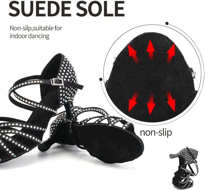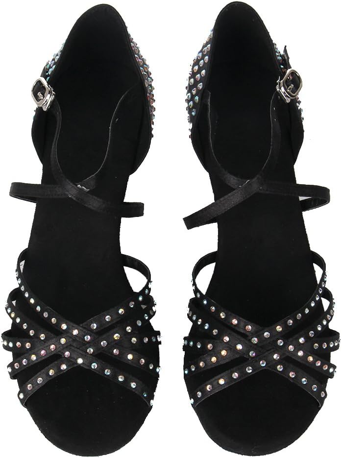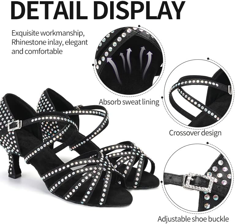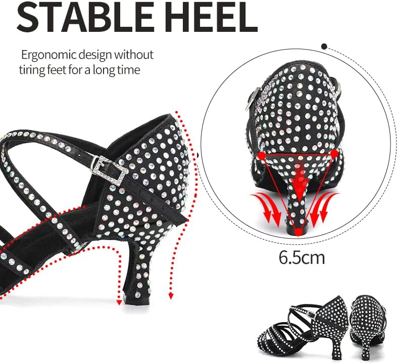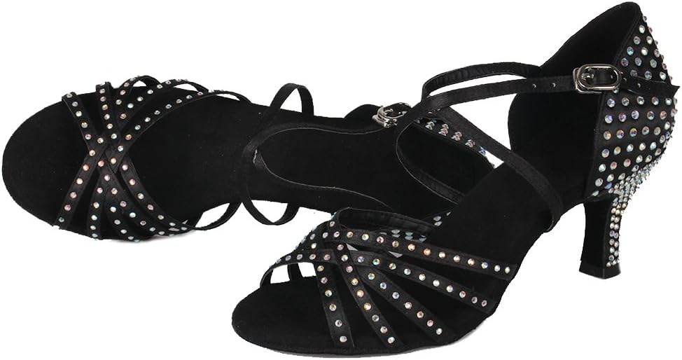 أحذية DKZSYIM النسائية للرقص اللاتيني من الساتان بأحجار الراين لقاعة الرقص السالسا، أحذية الرقص، AFCT40403-Black-6.5، US 6