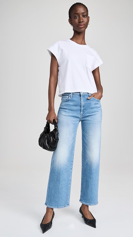 يعمل بشكل كبير؛ يرجى اختيار المقاس الأصغر، مصمم بارتفاع منخفض إلى متوسط وساق مستقيمة فضفاضة. التماس الداخلي مقصوص قليلاً. يتميز الدنيم المطاطي بإحساس متوسط الوزن.