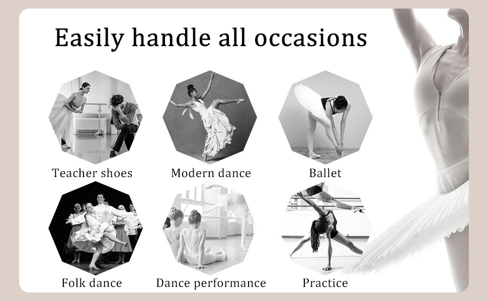 • ☀ المظهر: حذاء رقص بتصميم من قطعة واحدة بدون خياطة إضافية، يناسب معظم أشكال القدم ويظهر جمال الراقص. سيكون العنصر الأكثر أهمية في ملابس الأداء الخاصة بك، وهو الاختيار الذكي لمهنة الرقص الطويلة.