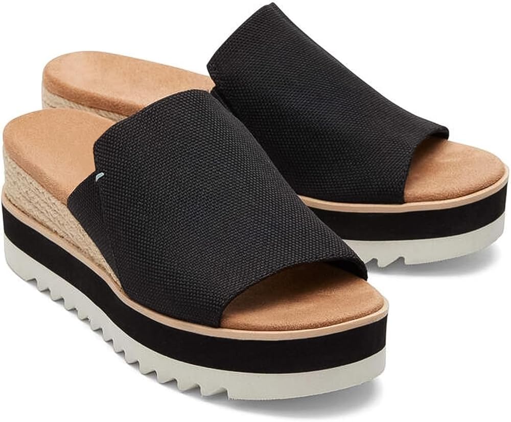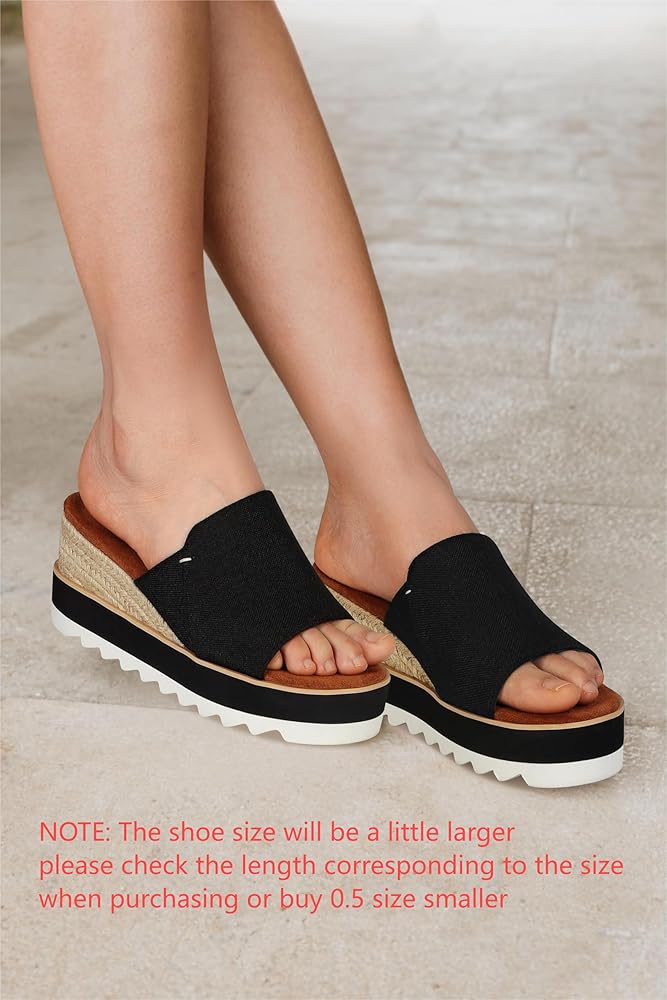 صنادل نسائية ذات نعل عريض من نوع Wedge Mules، صنادل Mule سهلة الارتداء، صنادل إسبادريل أنيقة ومريحة للصيف - أسود