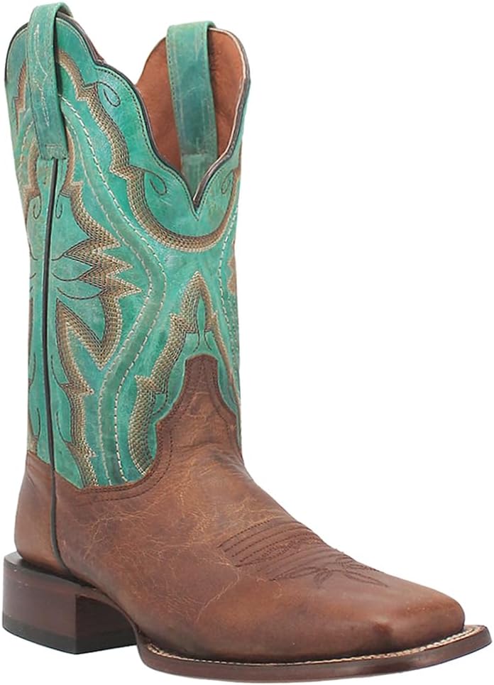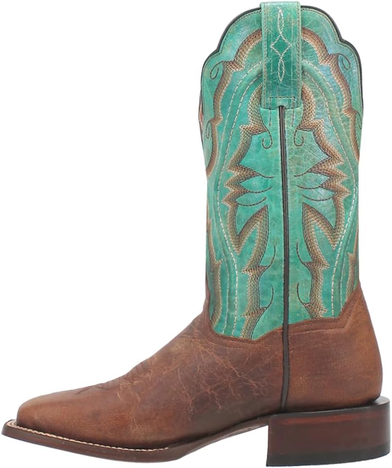 Laredo Womens Babs جلد مطرز بمقدمة مربعة كاجوال بكعب متوسط الساق وكعب منخفض 1-2 بوصة - بني، أخضر