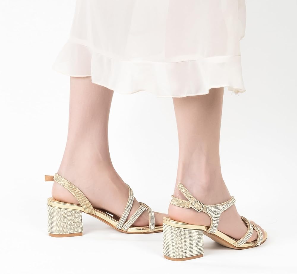 • لامعة وأنيقة: تتميز هذه الصنادل الرسمية بزخارف من حجر الراين اللامعة التي تزين الكعب والأشرطة، مما يخلق تأثيرًا ساحرًا يجذب الضوء مع كل خطوة.