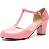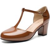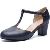 تتميز هذه الأحذية عالية الجودة بمقدمة مستديرة، وكعب منخفض، وأشرطة على شكل حرف T، وD'orsay، وإبزيم كاحل قابل للتعديل للرقص للنساء.