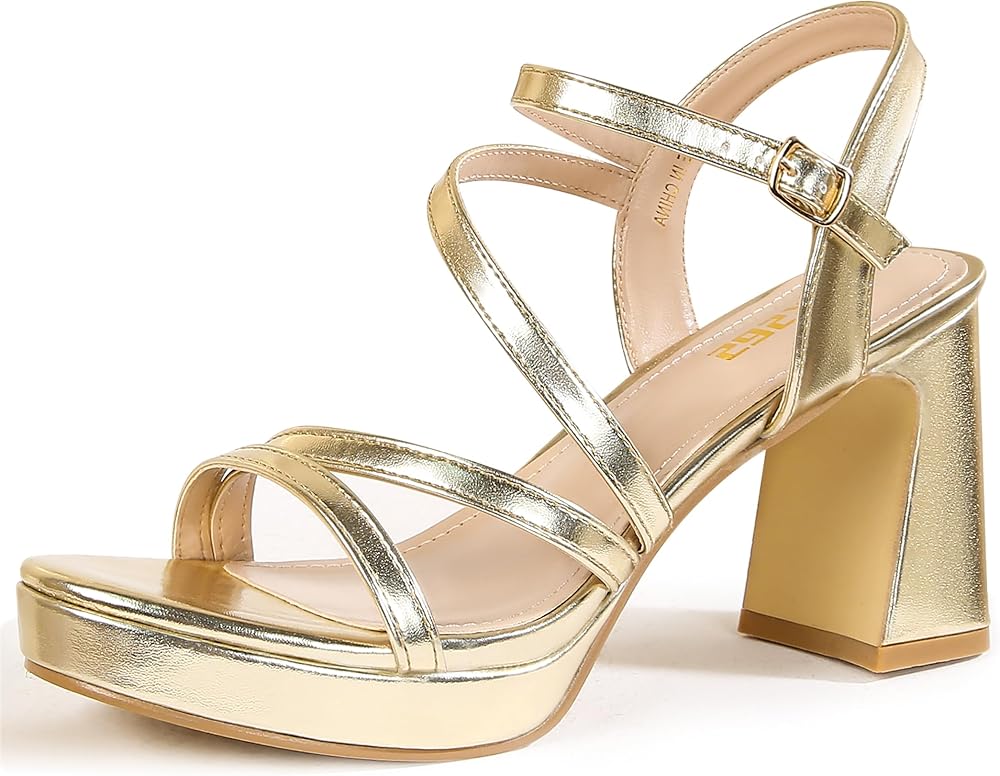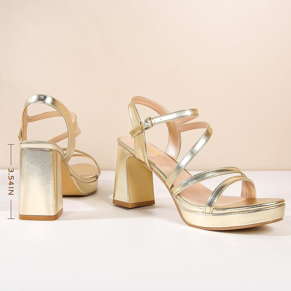 【Stable Thick Heel Sandals] This Gold high-heeled shoe has a patent leather PU upper,comfortable latex insole,block thick heel and non-slip rubber sole,making every step you walk smooth and confident.
