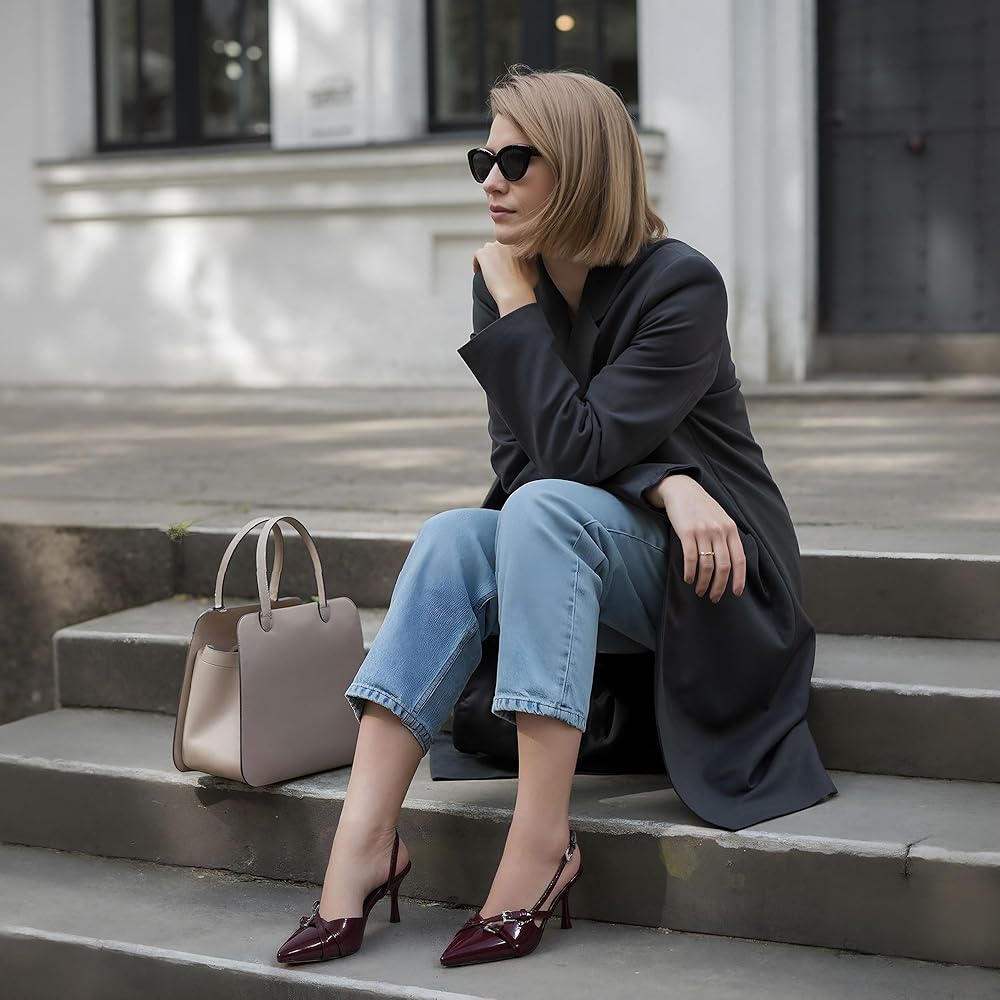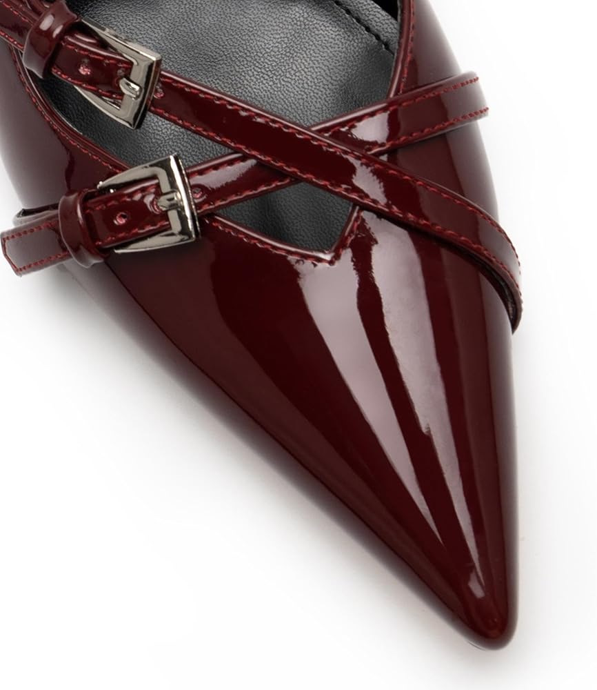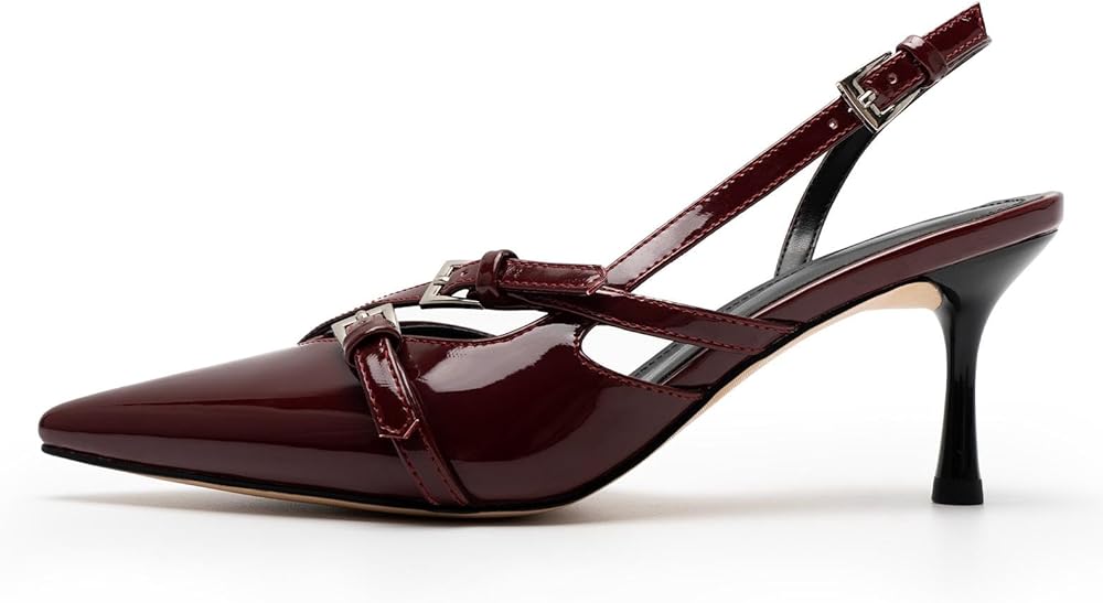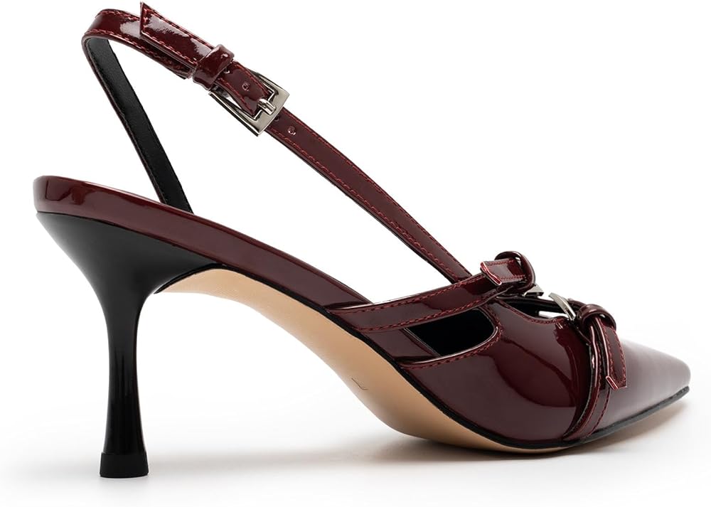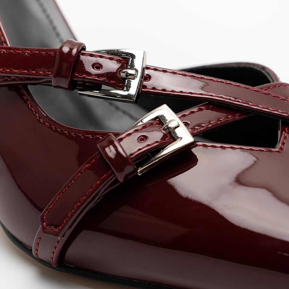 تصميم الإبزيم: قم بترقية مجموعة حذائك مع أحذية KaroNairy ذات الكعب الصغير ذات الانزلاق الخلفي والتي تتميز بتصميم إبزيم أنيق.