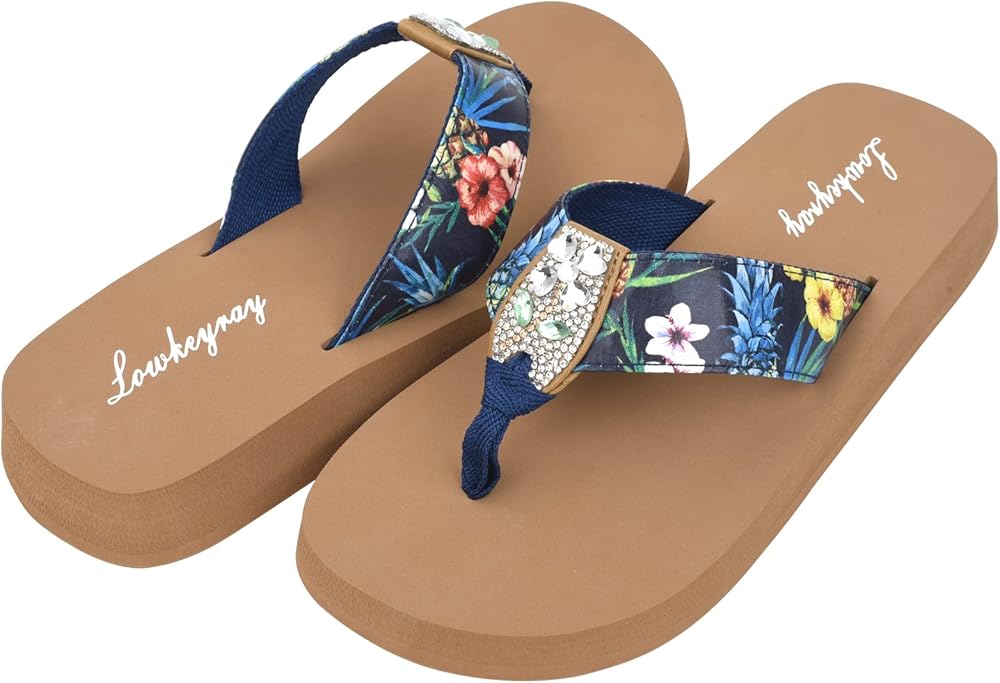 US Size:6 7 8 9 10 Weight: 7.8 ounces Color: brown background white surface, brown background blue flower surface You can enjoy walking with sufficient support without pain.The comfortable ladies Flip-Flops provide incredible comfort without lessening the essence of contemporary fashion streamline.