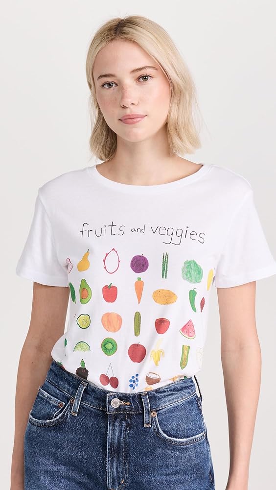 تي شيرت نسائي للفواكه والخضروات