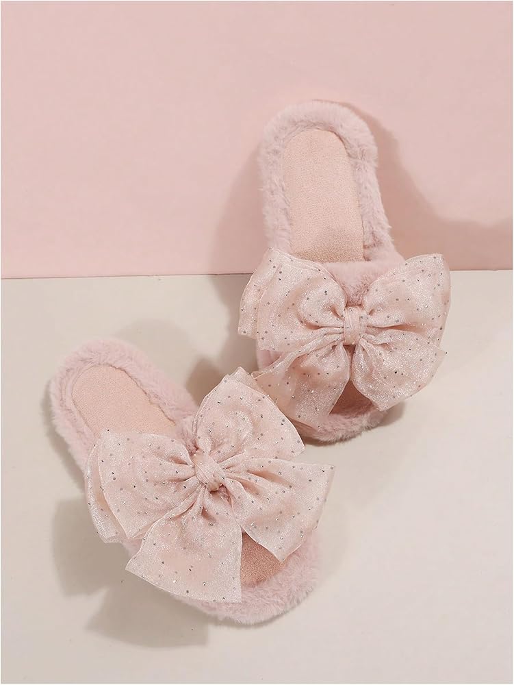 Oyoangle Women's Cute Bow Dick Slippers Slippers Solid Fashion Home Slippers مفتوحة