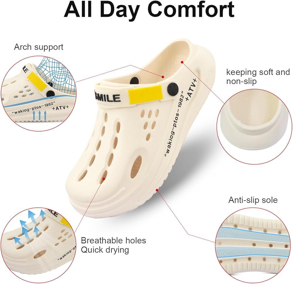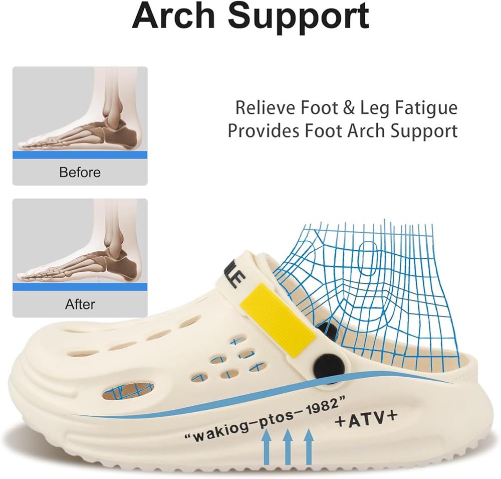 【قبقاب للنساء والرجال】: تم تصميم أحذية البستنة بشكل فريد لتوفير دعم للقوس وامتصاص ممتاز للصدمات، مما يقلل الضغط على قدميك والمفاصل والظهر بشكل فعال، مما يسمح لك بالشعور بالراحة والدعم طوال اليوم.