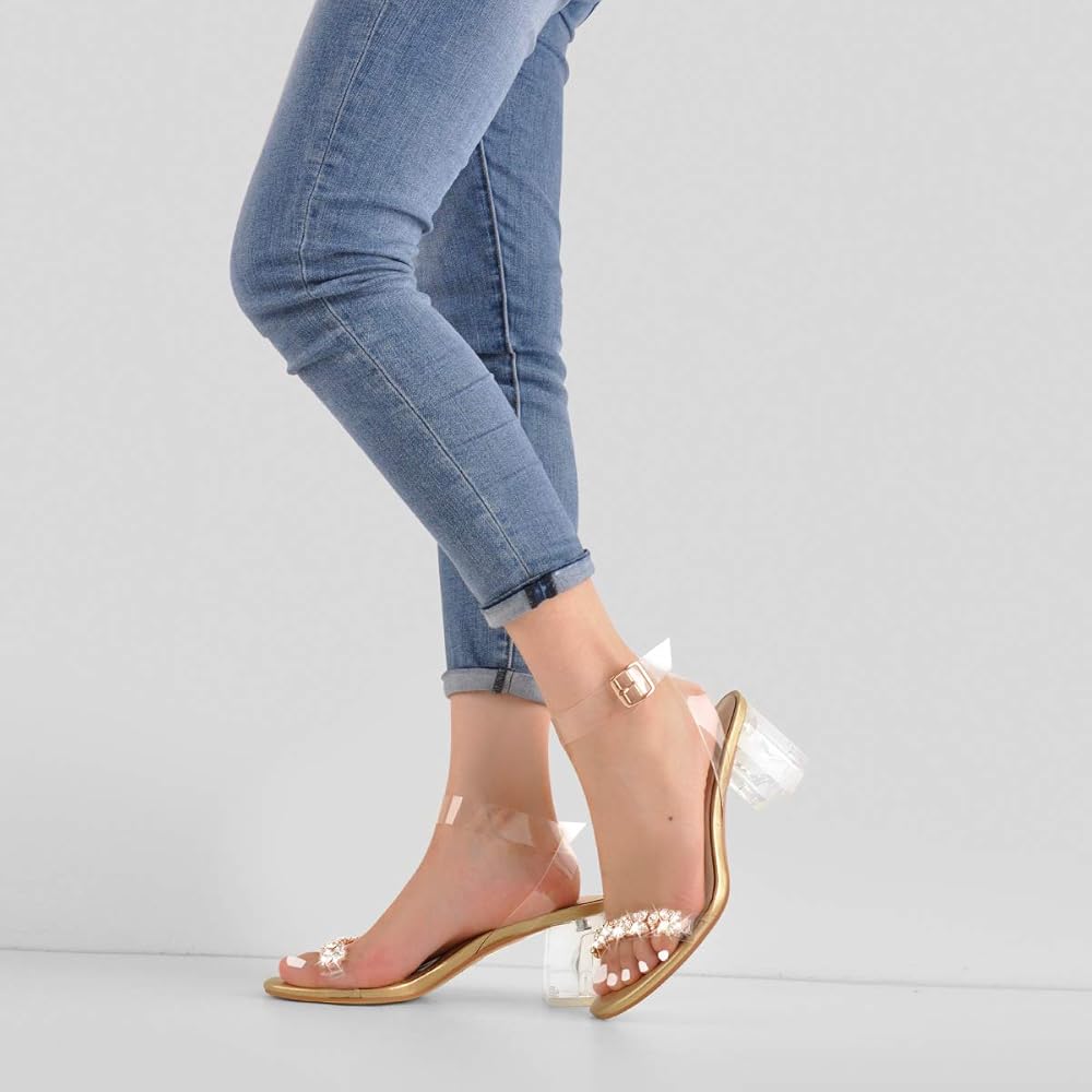 - كعب شفاف للنساء، صندل مفتوح منزلق مصمم بأشرطة مطاطية عالية الجودة عند الحواف، مناسب للأقدام العريضة أو الضيقة.