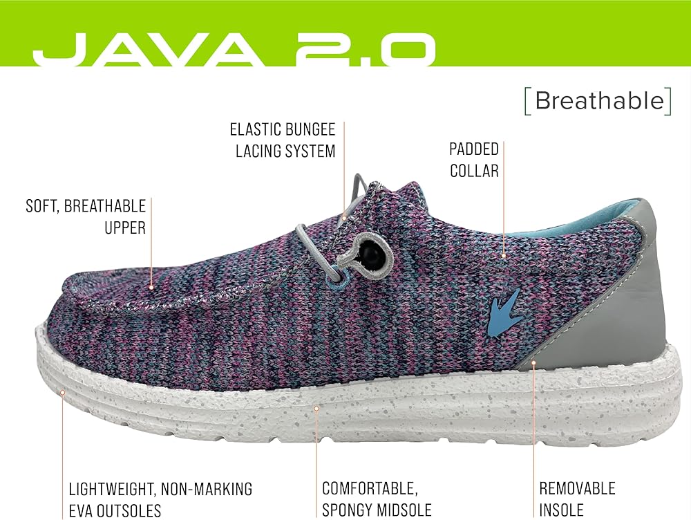 • CASUAL COMFORT - Java 2.0 is built for comfort. Light-weight and flexible, it's the perfect casual shoe for the boat, boardwalk, beach and beyond. The Java feels like a slipper yet functions like a shoe
