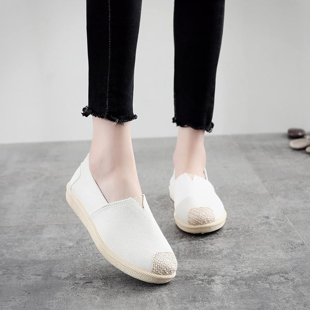 • الجزء العلوي من القماش لهذه الأحذية المسطحة سهلة الارتداء مسامي ومتين، مما يجعلها خيارًا رائعًا للارتداء اليومي.