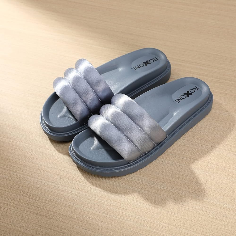 Slip-on slide sandals with thick, padded strap for all-day comfort