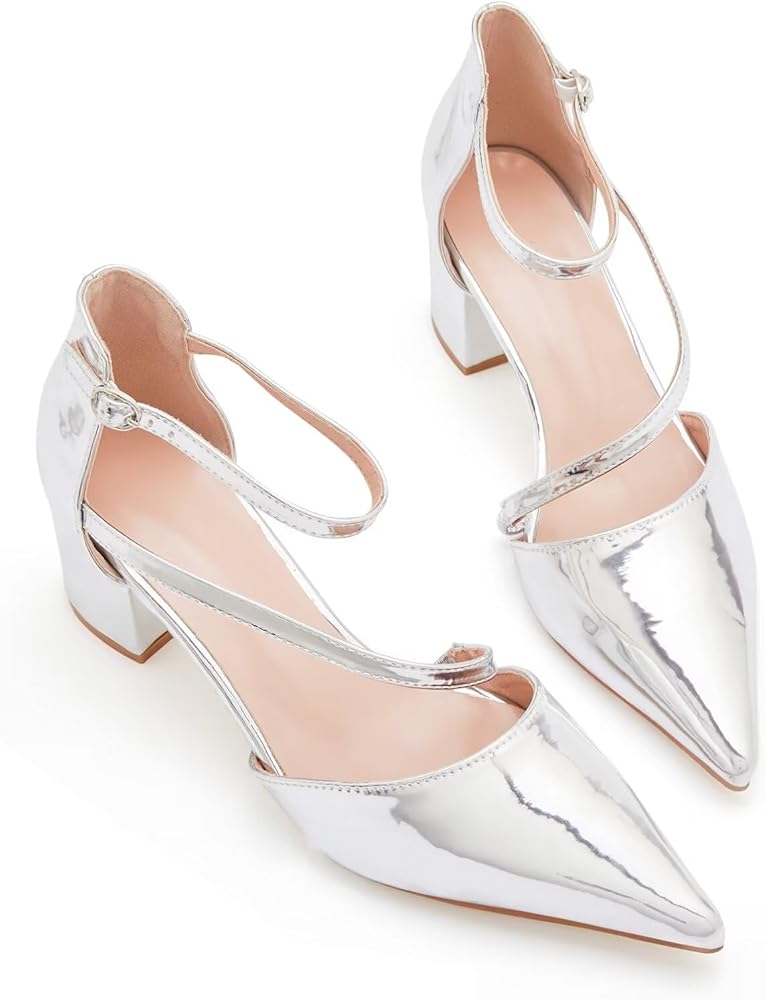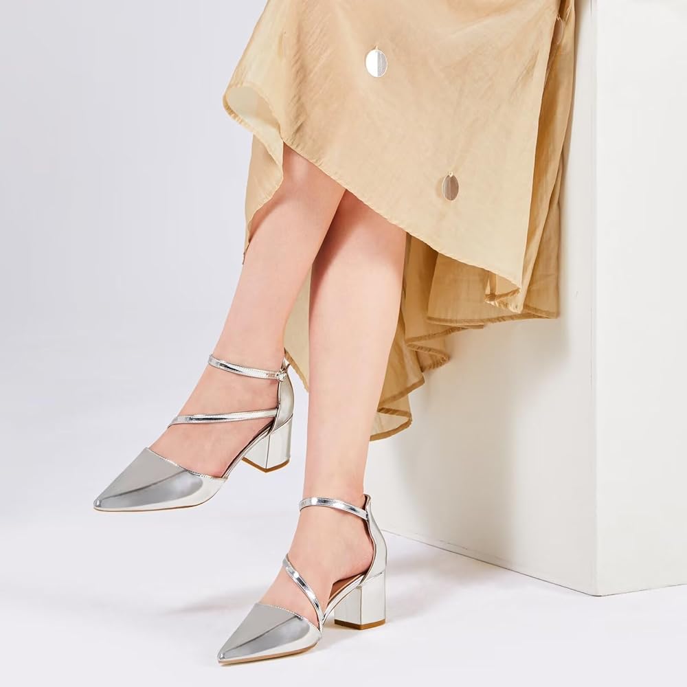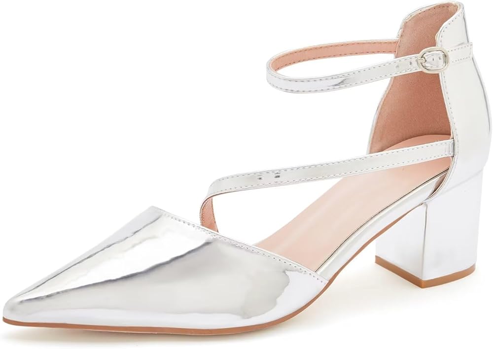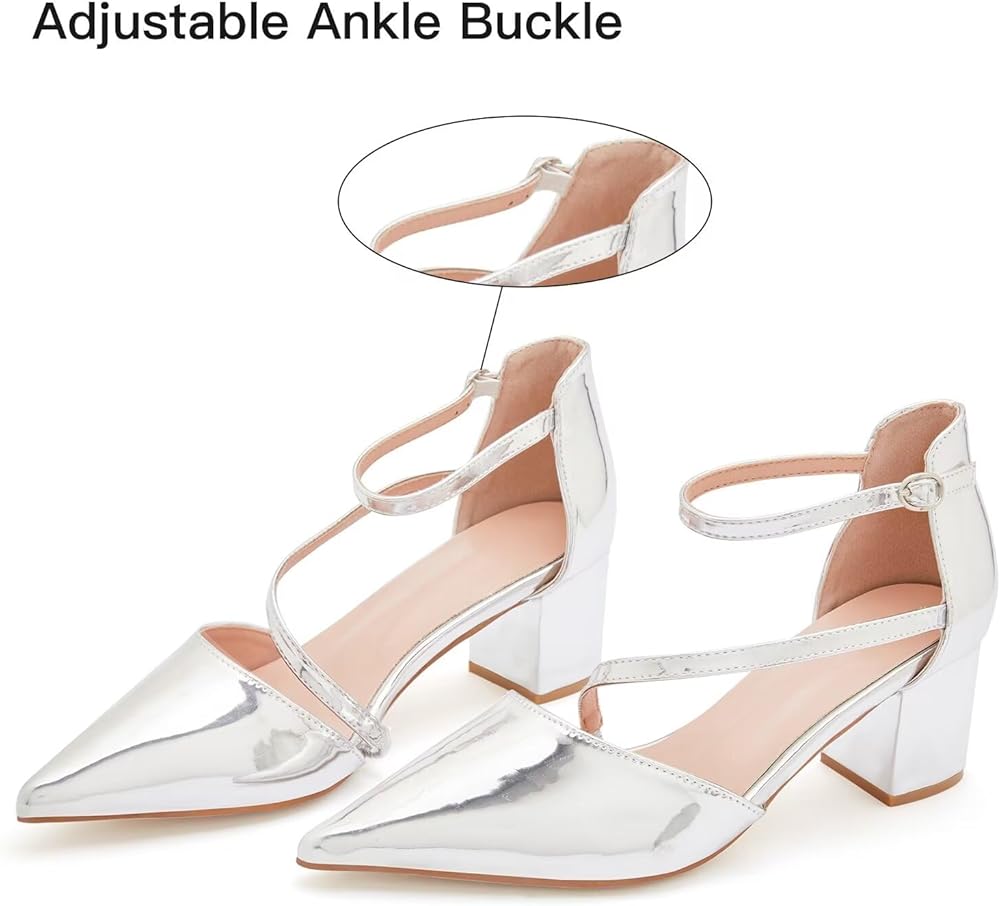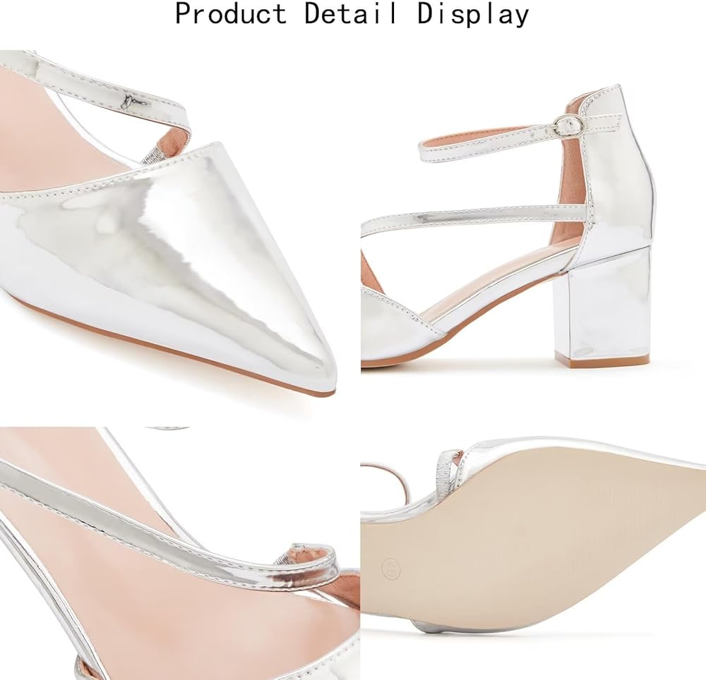 تصميم عصري: هذه الأحذية ذات الكعب المكتنز (حوالي 2.36 بوصة) للنساء تتميز بمقدمة كلاسيكية مدببة ومغلقة، وتصميم بأشرطة الكاحل للأحذية ذات الكعب العالي يضفي ذوقًا أنيقًا. بدون أي نمط يجعل المضخات أكثر تنوعًا